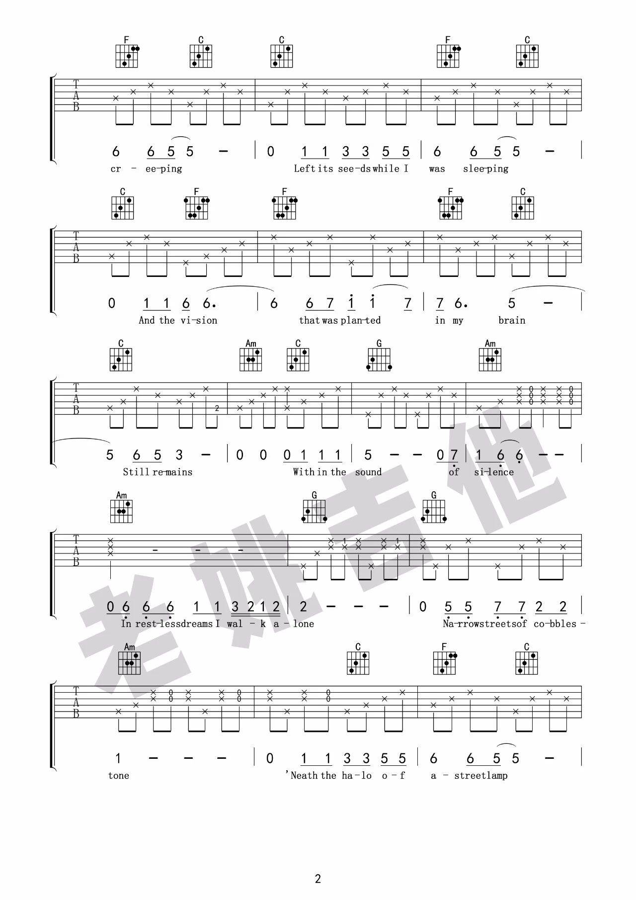 您现在的位置是:首页 > 吉他谱 > 《寂静之声吉他谱》 《寂静之声吉他谱》 日期:2023-12-23 22:35:01 这首歌曲名为《寂静之声》,采用了C调指法编配,原调为#F调。演唱时可使用变调夹进行调整,以适应个人嗓音。这份吉他谱共包含五张高清图片,由酷琴谱提供。歌曲意境深远,表达了别离时的静默之美,心领神会的情感交流。我们都明白无需言语,相识是一段美好的缘分。即便你选择离