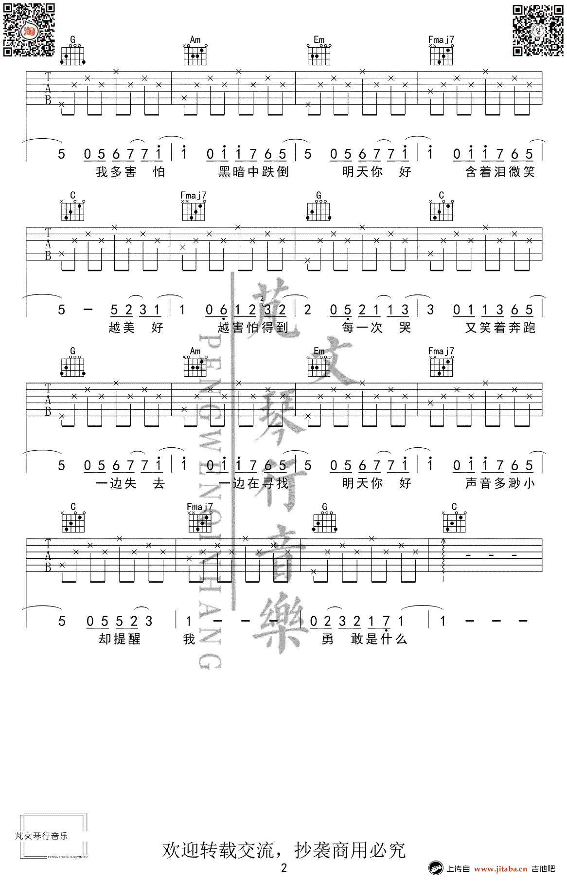 《牛奶咖啡《明天你好吉他谱》(C调)》内容来自于互联网,不能保证内容的准确性与完整性,仅供学习交流欣赏,请勿用于其它用途,内容版权归原作者及来源网站所有,如有侵犯到您的权益请来信告知,我们将及时删除。