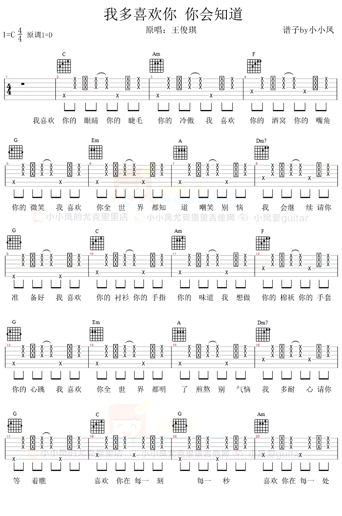 《王俊琪《我多喜欢你,你会知道吉他谱》》内容来自于互联网,不能保证内容的准确性与完整性,仅供学习交流欣赏,请勿用于其它用途,内容版权归原作者及来源网站所有,如有侵犯到您的权益请来信告知,我们将及时删除。