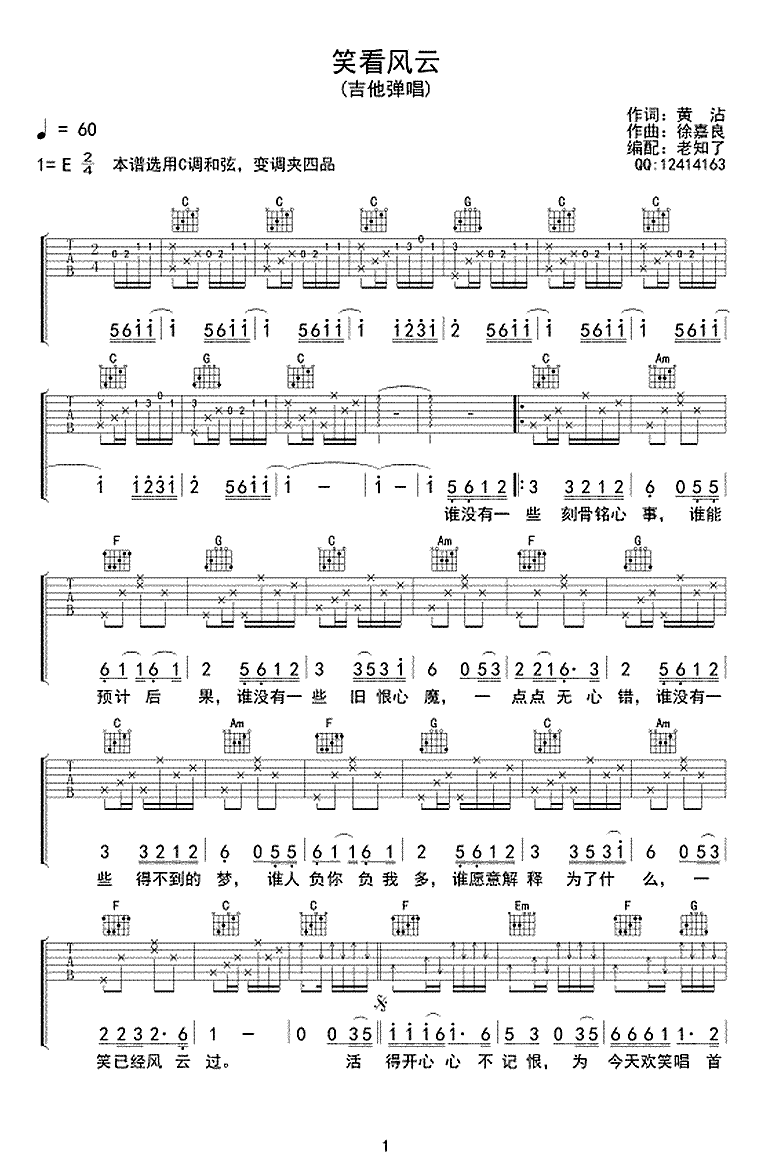 《《笑看风云吉他谱》(C调)》内容来自于互联网,不能保证内容的准确性与完整性,仅供学习交流欣赏,请勿用于其它用途,内容版权归原作者及来源网站所有,如有侵犯到您的权益请来信告知,我们将及时删除。