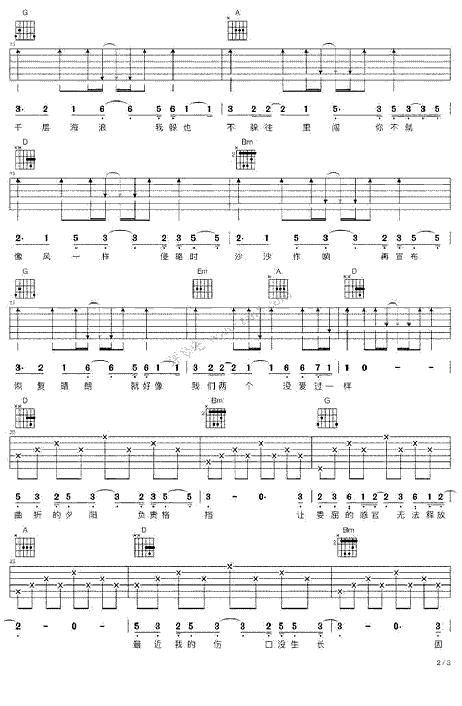 《薛之谦《像风一样吉他谱》》内容来自于互联网,不能保证内容的准确性与完整性,仅供学习交流欣赏,请勿用于其它用途,内容版权归原作者及来源网站所有,如有侵犯到您的权益请来信告知,我们将及时删除。