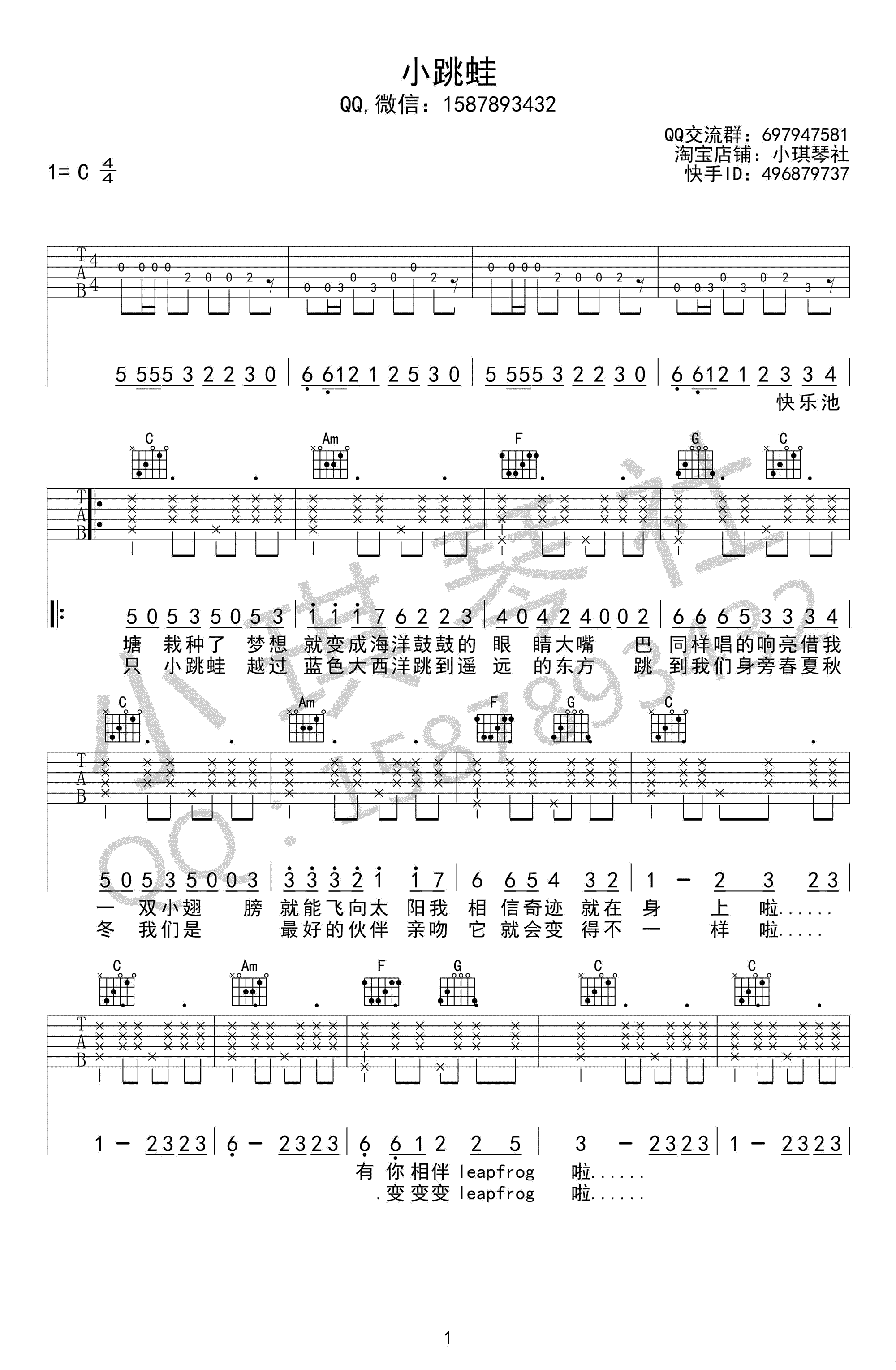 《青蛙乐队《小跳蛙吉他谱》(C调)》内容来自于互联网,不能保证内容的准确性与完整性,仅供学习交流欣赏,请勿用于其它用途,内容版权归原作者及来源网站所有,如有侵犯到您的权益请来信告知,我们将及时删除。