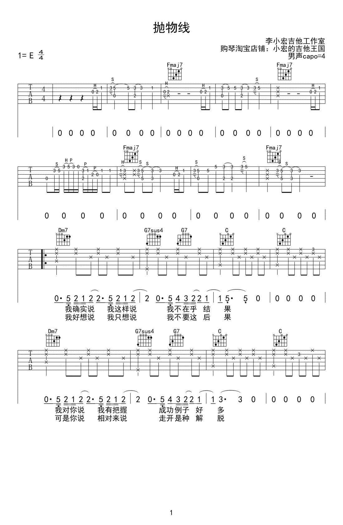 《蔡健雅《抛物线吉他谱》》内容来自于互联网,不能保证内容的准确性与完整性,仅供学习交流欣赏,请勿用于其它用途,内容版权归原作者及来源网站所有,如有侵犯到您的权益请来信告知,我们将及时删除。