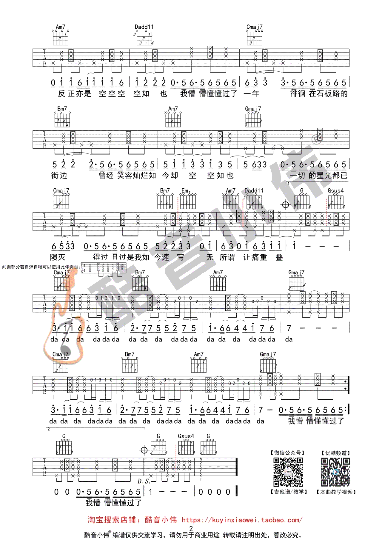 《胡66《空空如也吉他谱》(G调)》内容来自于互联网,不能保证内容的准确性与完整性,仅供学习交流欣赏,请勿用于其它用途,内容版权归原作者及来源网站所有,如有侵犯到您的权益请来信告知,我们将及时删除。