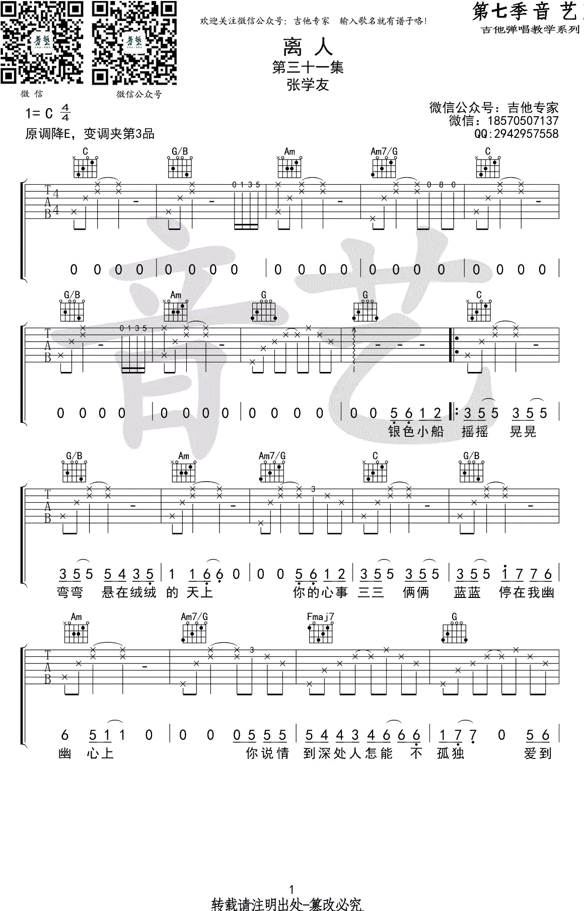 《林志炫《离人吉他谱》(C调)》内容来自于互联网,不能保证内容的准确性与完整性,仅供学习交流欣赏,请勿用于其它用途,内容版权归原作者及来源网站所有,如有侵犯到您的权益请来信告知,我们将及时删除。