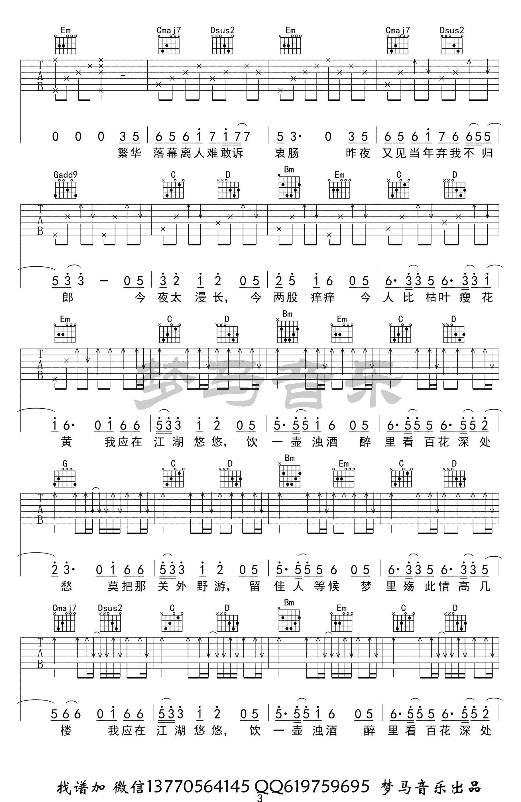 《《离人愁吉他谱》(G调)》内容来自于互联网,不能保证内容的准确性与完整性,仅供学习交流欣赏,请勿用于其它用途,内容版权归原作者及来源网站所有,如有侵犯到您的权益请来信告知,我们将及时删除。