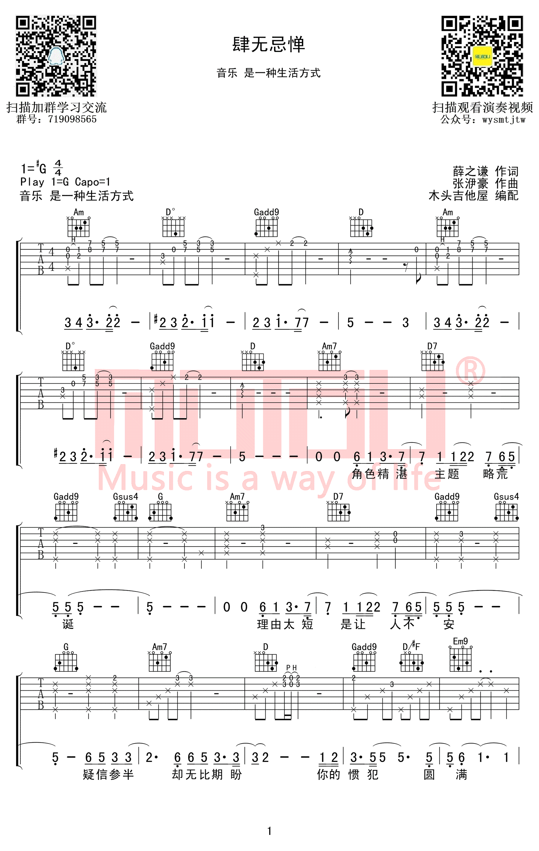 《薛之谦《肆无忌惮吉他谱》(G调)》内容来自于互联网,不能保证内容的准确性与完整性,仅供学习交流欣赏,请勿用于其它用途,内容版权归原作者及来源网站所有,如有侵犯到您的权益请来信告知,我们将及时删除。