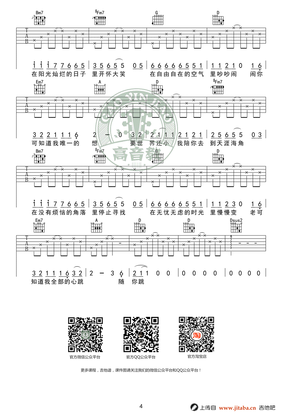 本文标题 《杨宗纬《一次就好吉他谱》(D调)》,网址:https://www.21qupu.com/guitar/8006.html