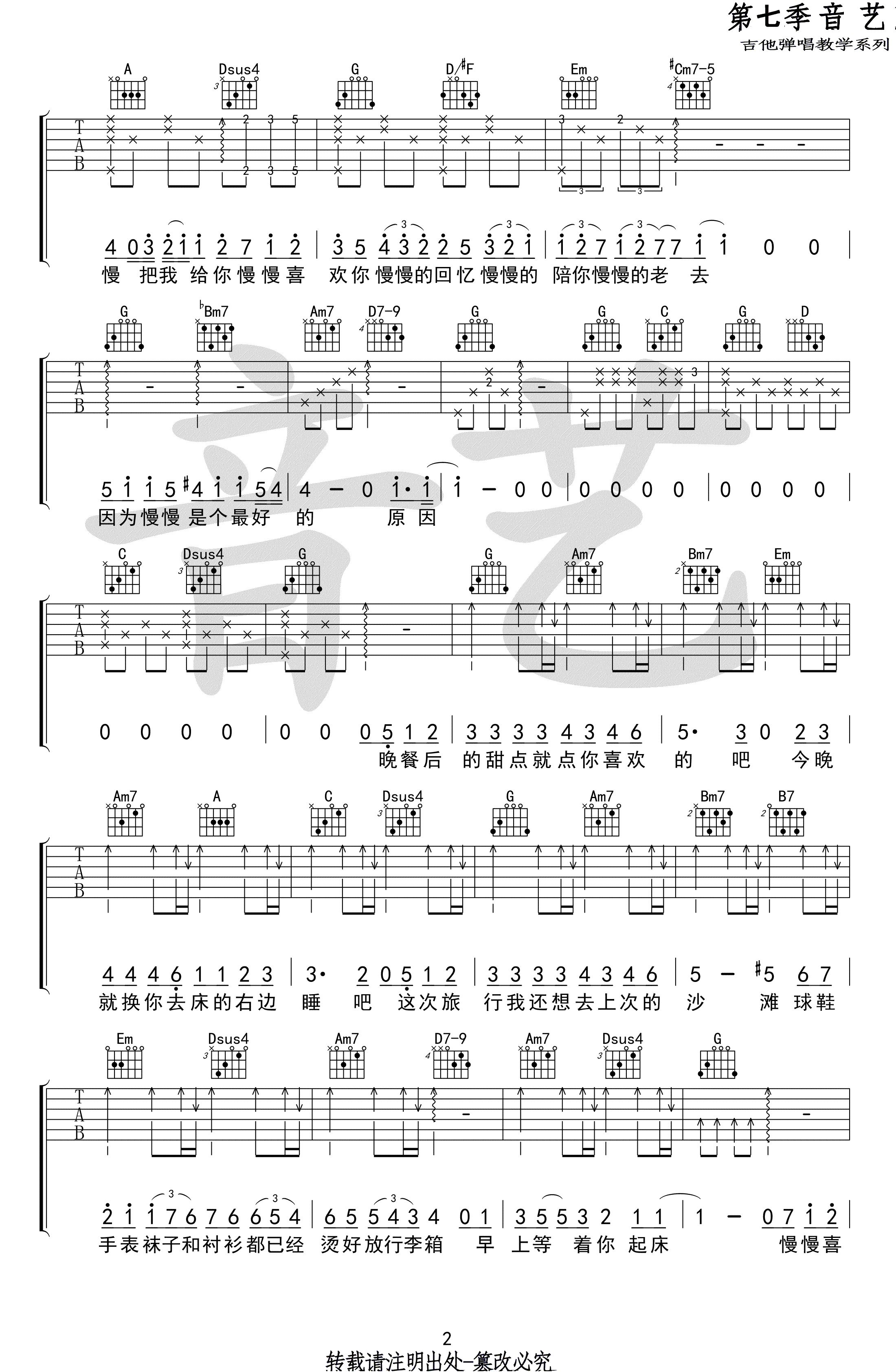 《李荣浩《慢慢喜欢你吉他谱》(G调)》内容来自于互联网,不能保证内容的准确性与完整性,仅供学习交流欣赏,请勿用于其它用途,内容版权归原作者及来源网站所有,如有侵犯到您的权益请来信告知,我们将及时删除。