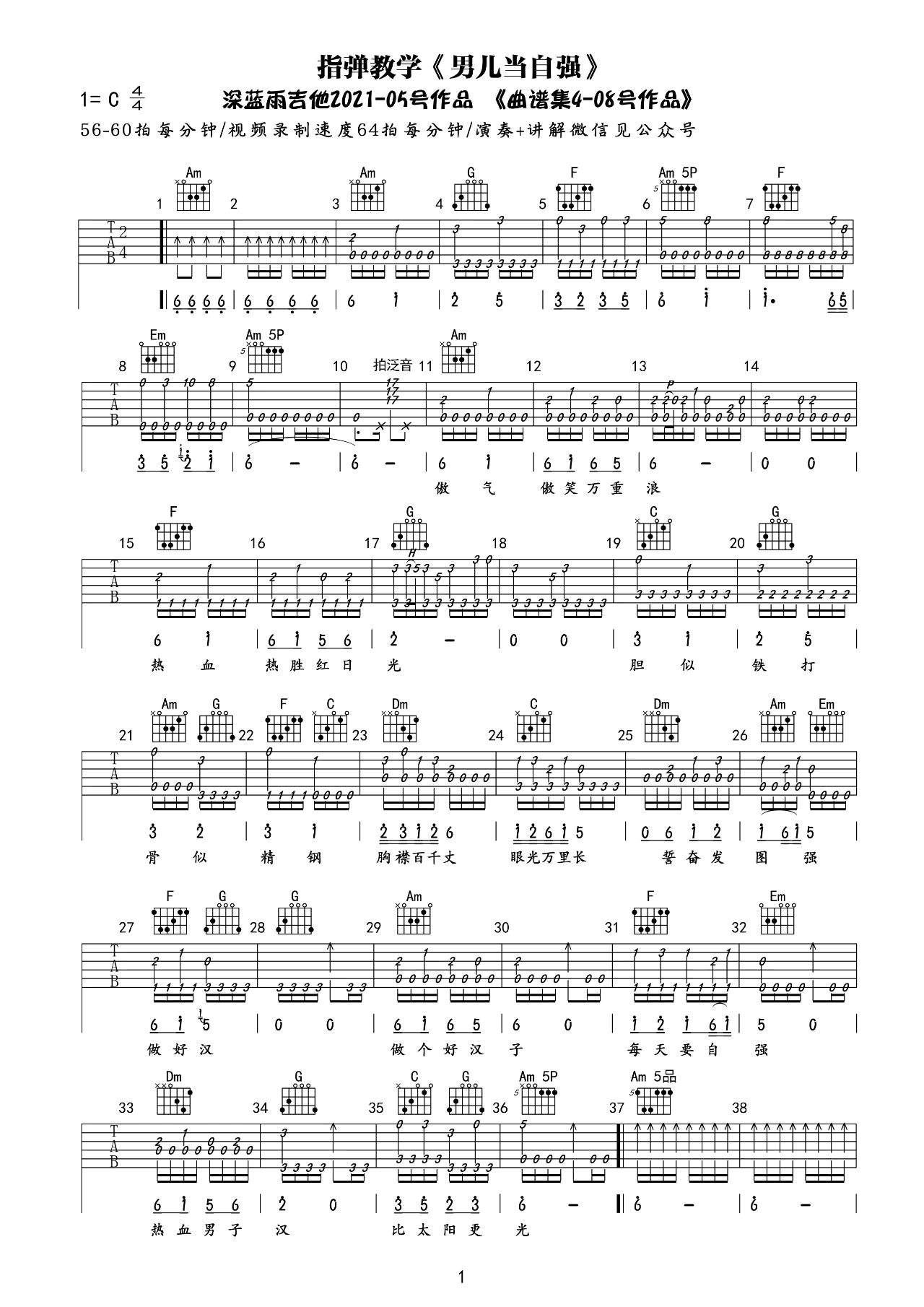 《男儿当自强》是一首改编自林子祥经典粤语歌曲的指弹吉他谱,采用C调编配。这首练习曲旨在增强琴友们右手连续拨低音琴弦的能力。它是电影《黄飞鸿》系列的主题曲,蕴含着豪气与激情的旋律,充满着昂扬气势和侠义精神。这首歌让人热血沸腾,一句“男儿当自强”成为男性自我激励的