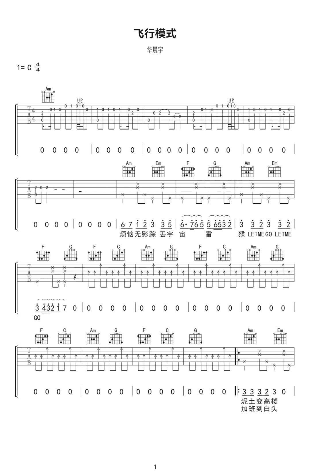 《华晨宇《飞行模式吉他谱》(C调)》内容来自于互联网,不能保证内容的准确性与完整性,仅供学习交流欣赏,请勿用于其它用途,内容版权归原作者及来源网站所有,如有侵犯到您的权益请来信告知,我们将及时删除。