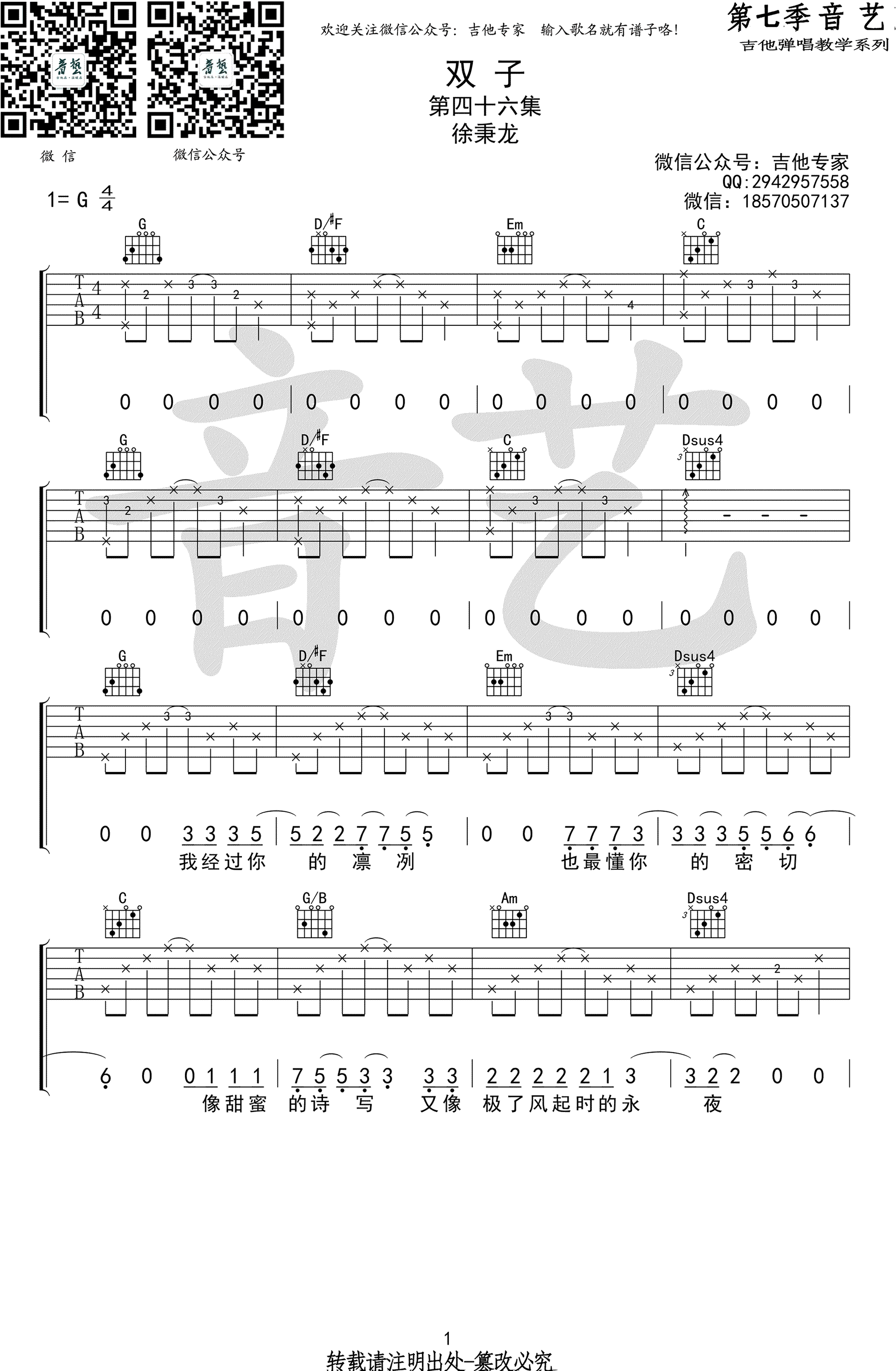 《宁静《双子吉他谱》(G调)》内容来自于互联网,不能保证内容的准确性与完整性,仅供学习交流欣赏,请勿用于其它用途,内容版权归原作者及来源网站所有,如有侵犯到您的权益请来信告知,我们将及时删除。