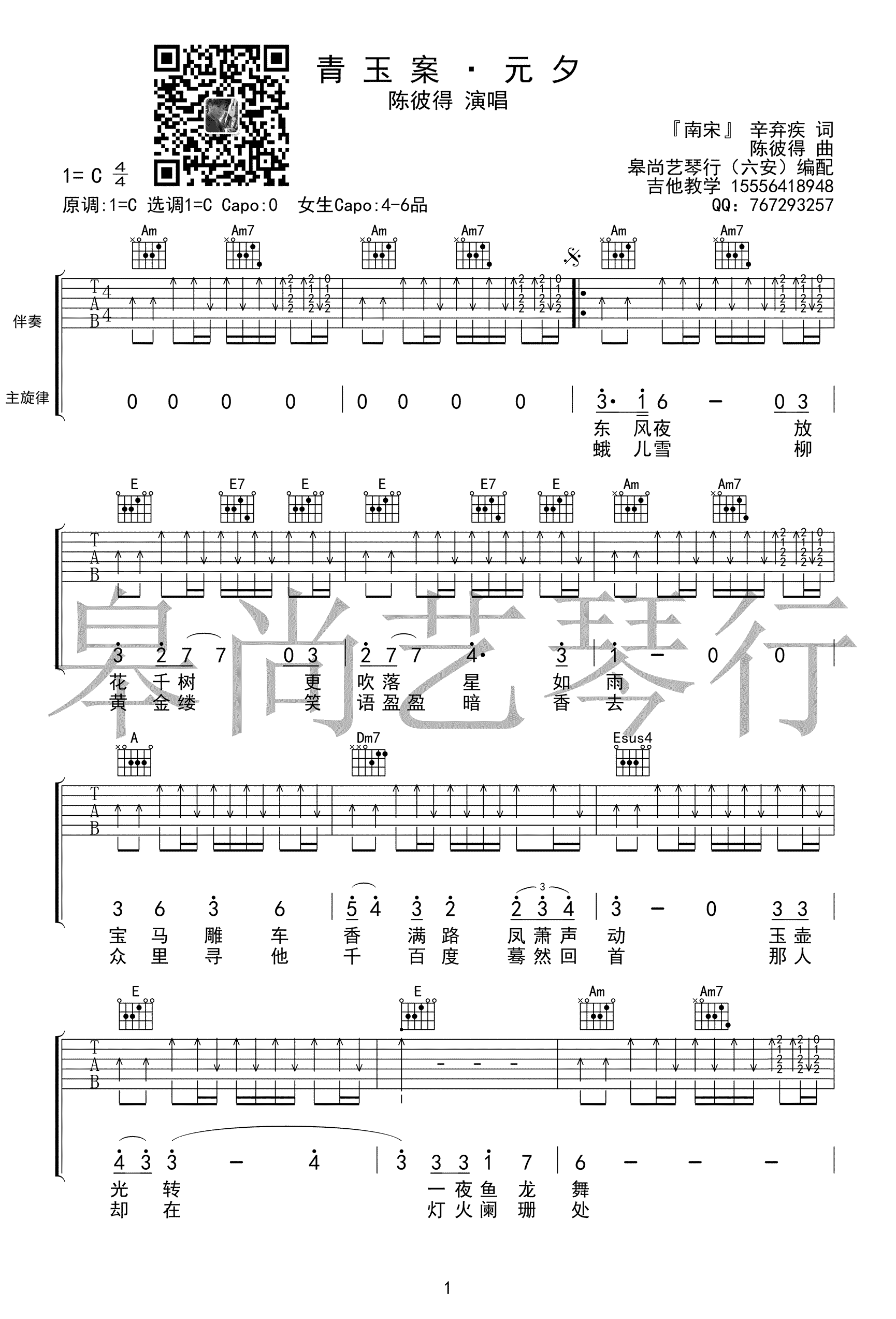 《《青玉案元夕吉他谱》(C调)》内容来自于互联网,不能保证内容的准确性与完整性,仅供学习交流欣赏,请勿用于其它用途,内容版权归原作者及来源网站所有,如有侵犯到您的权益请来信告知,我们将及时删除。