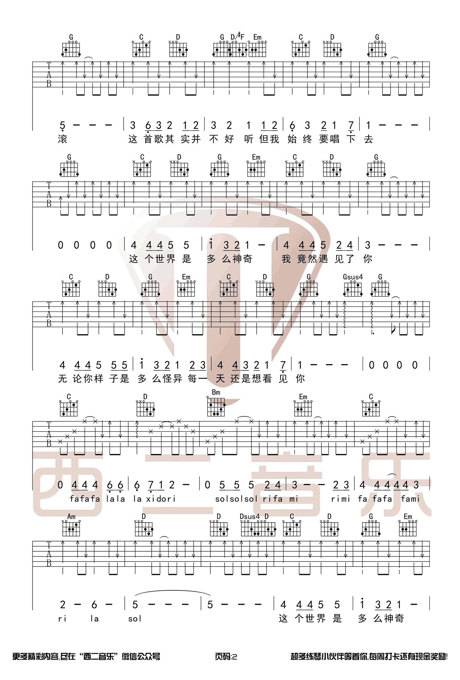 《西二《无论你多怪异我还是会喜欢你吉他谱》》内容来自于互联网,不能保证内容的准确性与完整性,仅供学习交流欣赏,请勿用于其它用途,内容版权归原作者及来源网站所有,如有侵犯到您的权益请来信告知,我们将及时删除。