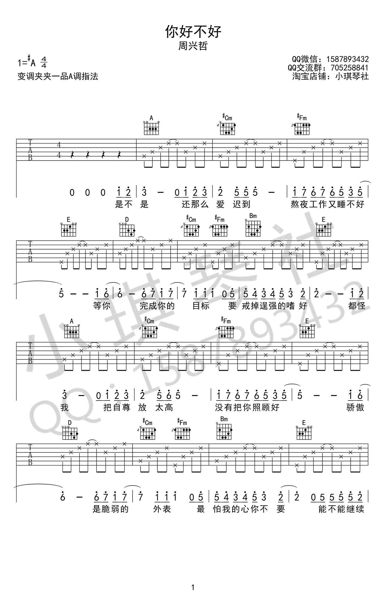 《周兴哲《你好不好吉他谱》(A调)》内容来自于互联网,不能保证内容的准确性与完整性,仅供学习交流欣赏,请勿用于其它用途,内容版权归原作者及来源网站所有,如有侵犯到您的权益请来信告知,我们将及时删除。