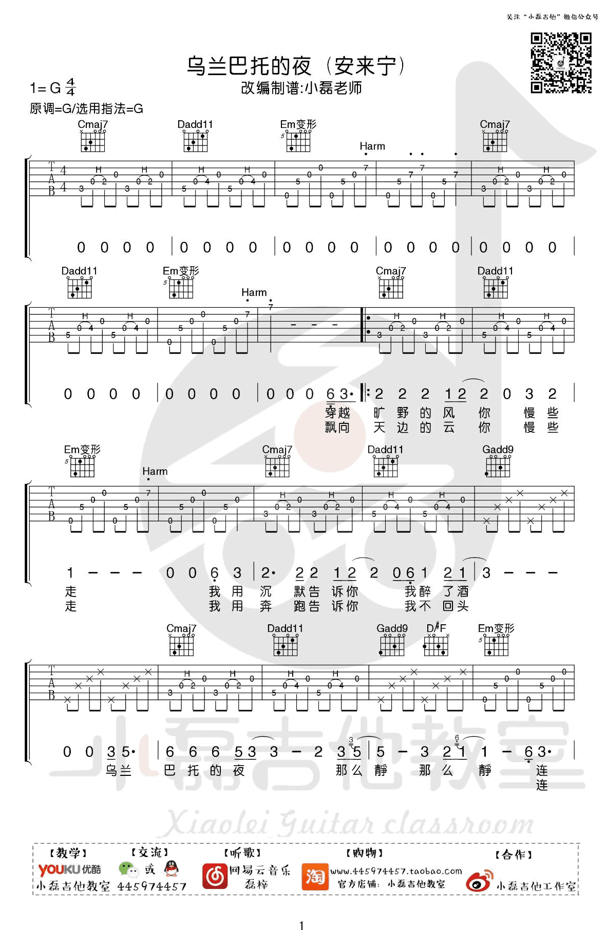 《安来宁《乌兰巴托的夜吉他谱》(G调)》内容来自于互联网,不能保证内容的准确性与完整性,仅供学习交流欣赏,请勿用于其它用途,内容版权归原作者及来源网站所有,如有侵犯到您的权益请来信告知,我们将及时删除。