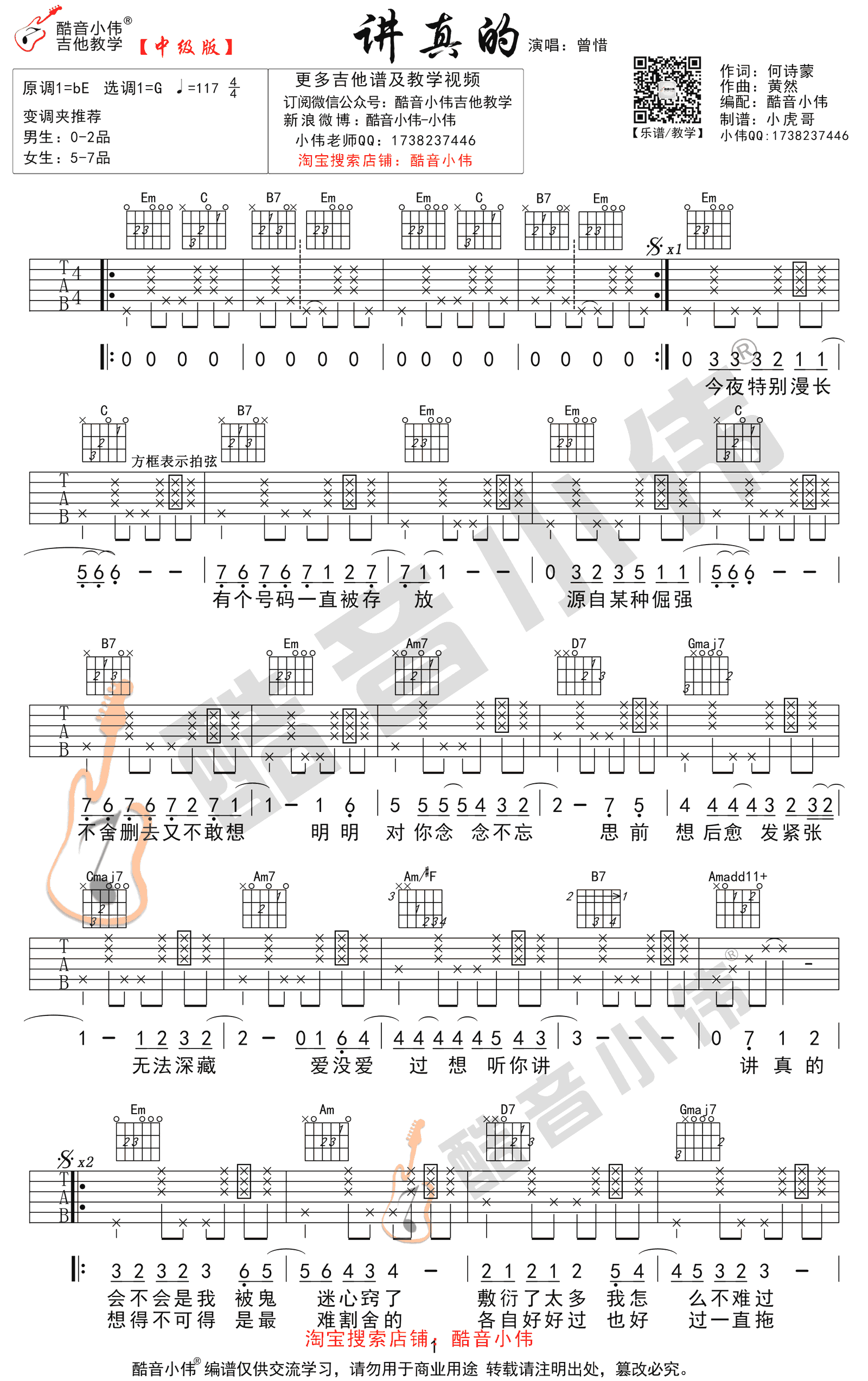 《曾惜《讲真的吉他谱》(G调)》内容来自于互联网,不能保证内容的准确性与完整性,仅供学习交流欣赏,请勿用于其它用途,内容版权归原作者及来源网站所有,如有侵犯到您的权益请来信告知,我们将及时删除。