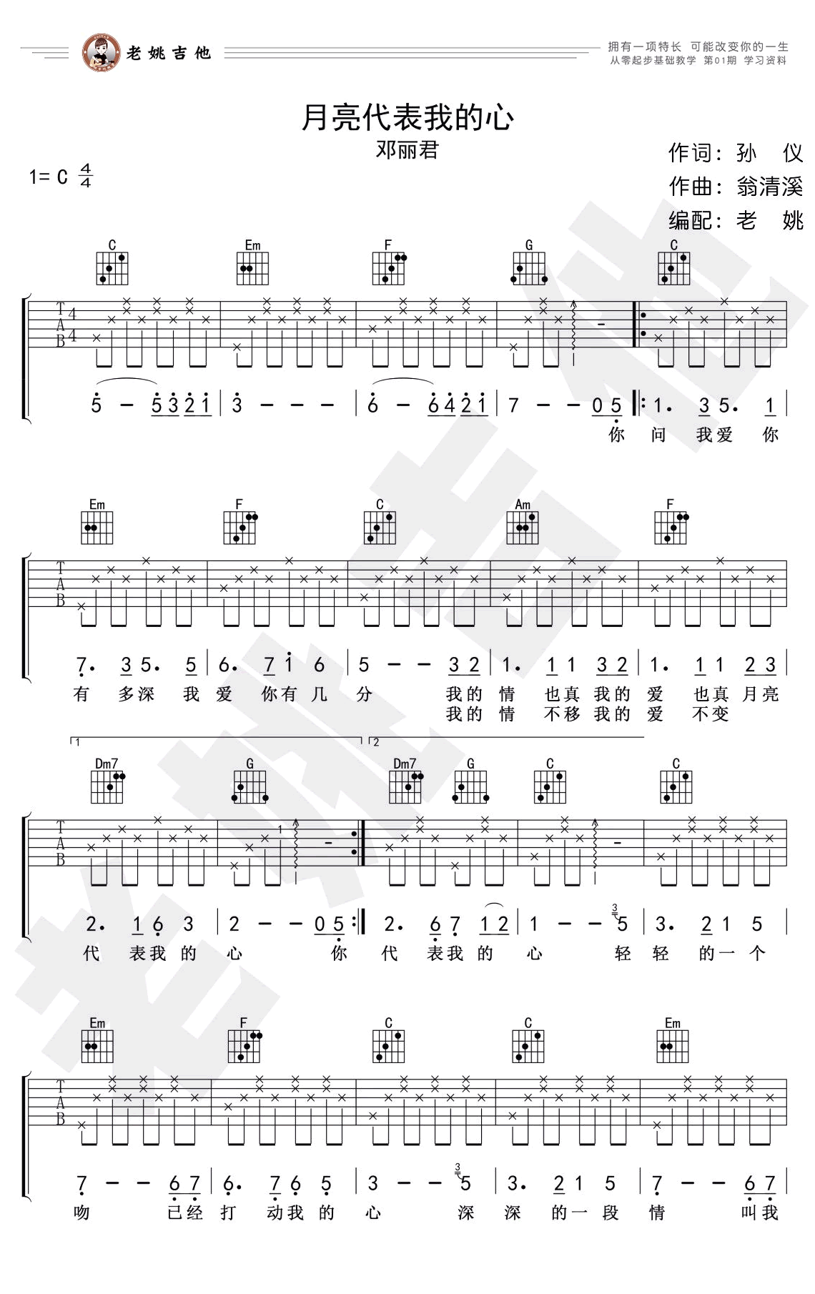 《邓丽君《月亮代表我的心吉他谱》》内容来自于互联网,不能保证内容的准确性与完整性,仅供学习交流欣赏,请勿用于其它用途,内容版权归原作者及来源网站所有,如有侵犯到您的权益请来信告知,我们将及时删除。