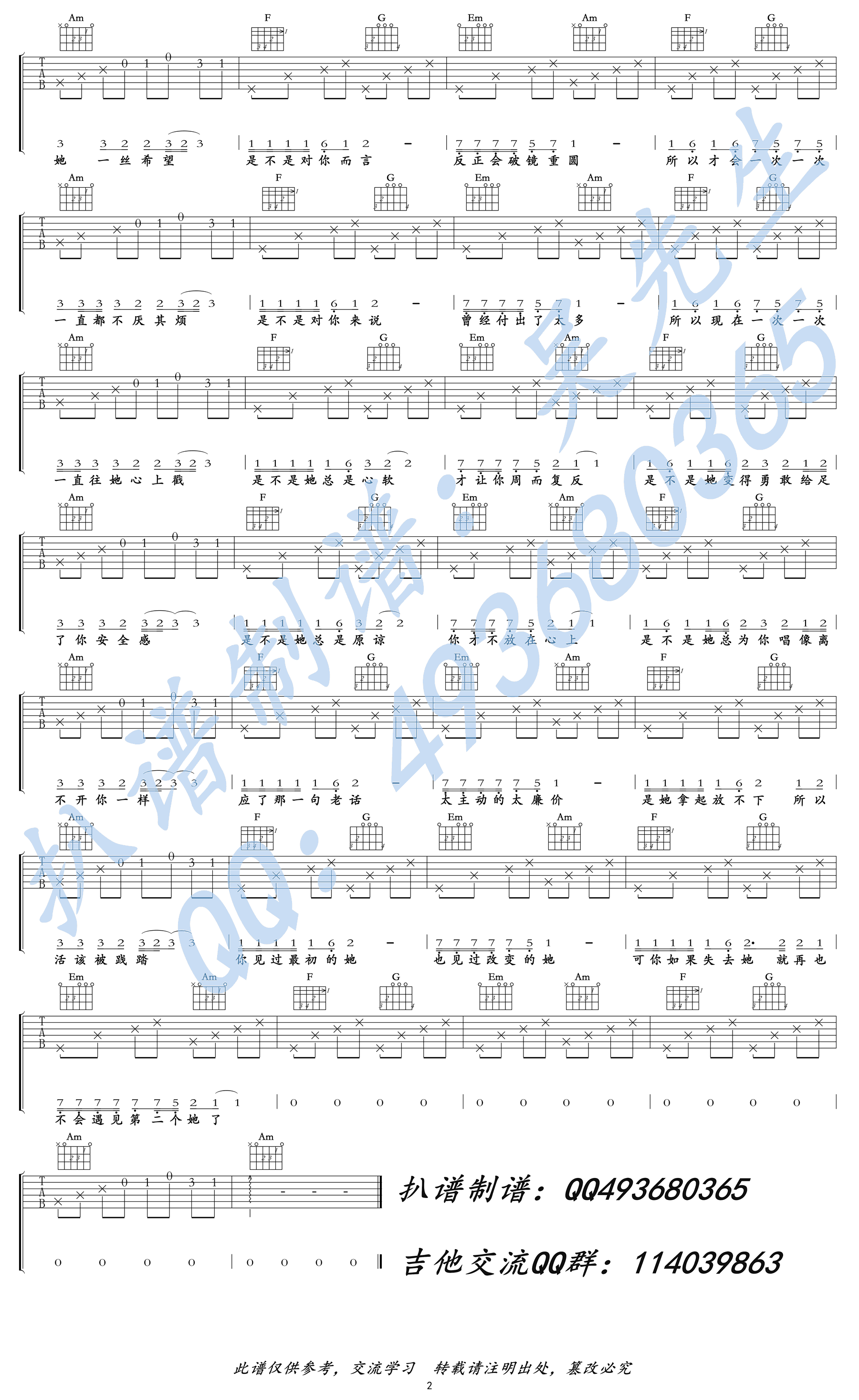 《李哈哈《再也不会遇见第二个她吉他谱》(C调)》内容来自于互联网,不能保证内容的准确性与完整性,仅供学习交流欣赏,请勿用于其它用途,内容版权归原作者及来源网站所有,如有侵犯到您的权益请来信告知,我们将及时删除。