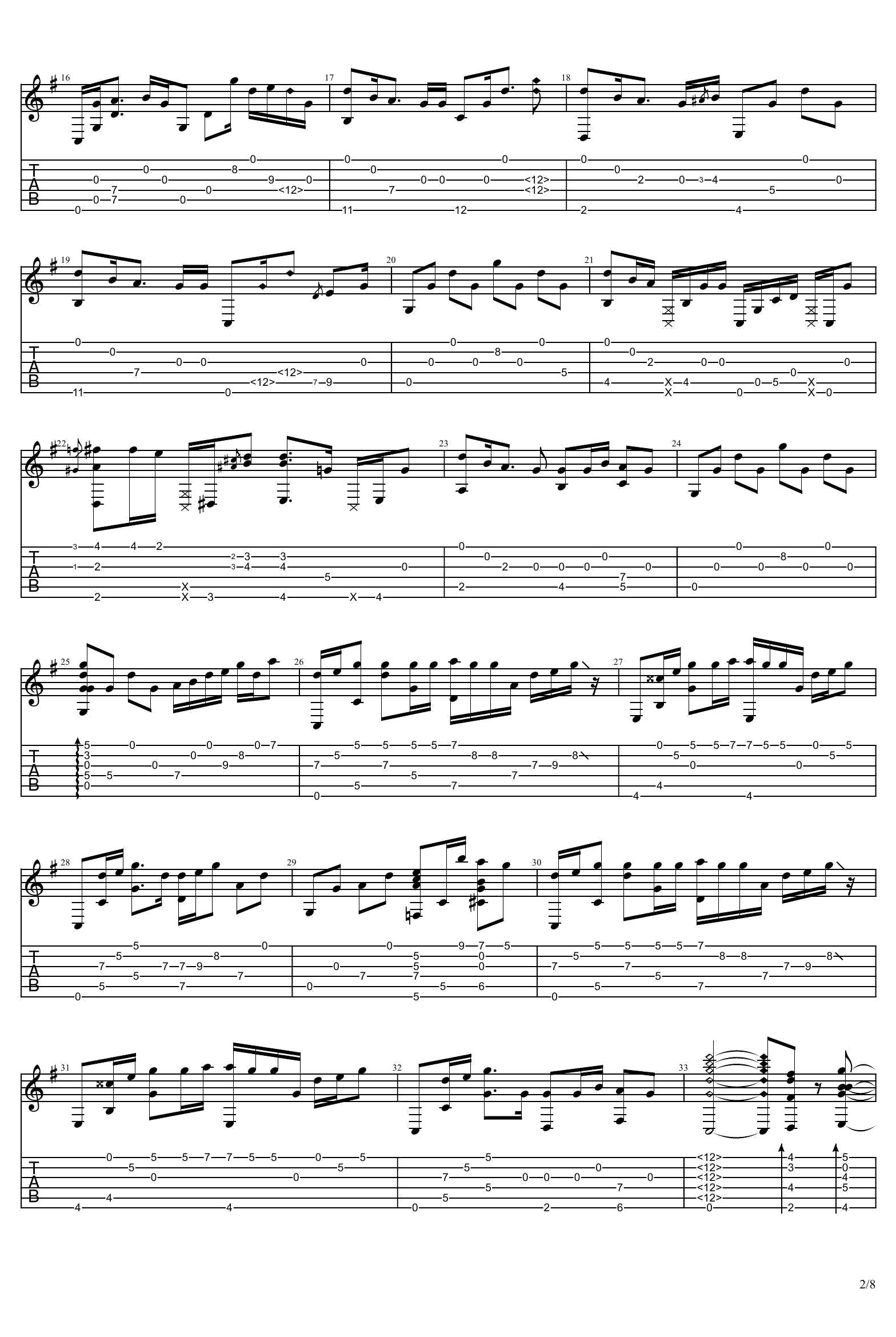 这首歌曲是电影《你的名字》片尾曲《没什么大不了》的指弹谱,电影由岛国导演新海诚执导,神木隆之介和上白石萌音为主要配音,讲述了一段穿越时空的唯美爱恋故事。曲子由著名乐队RADWIMPS演唱,这个版本是经典曲目的指弹改编版,共包括八张谱例图片。