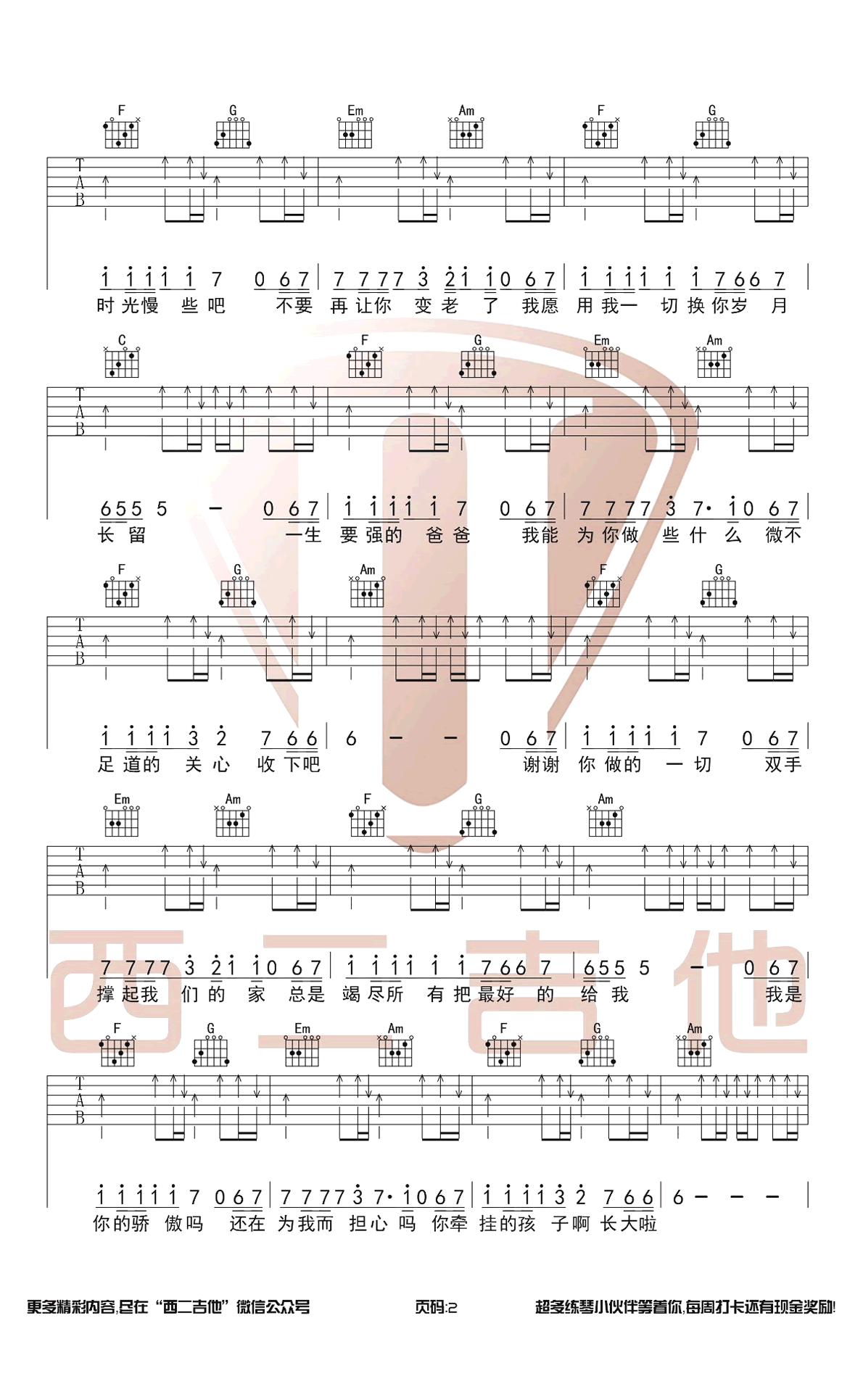《筷子兄弟《父亲吉他谱》(C调)》内容来自于互联网,不能保证内容的准确性与完整性,仅供学习交流欣赏,请勿用于其它用途,内容版权归原作者及来源网站所有,如有侵犯到您的权益请来信告知,我们将及时删除。