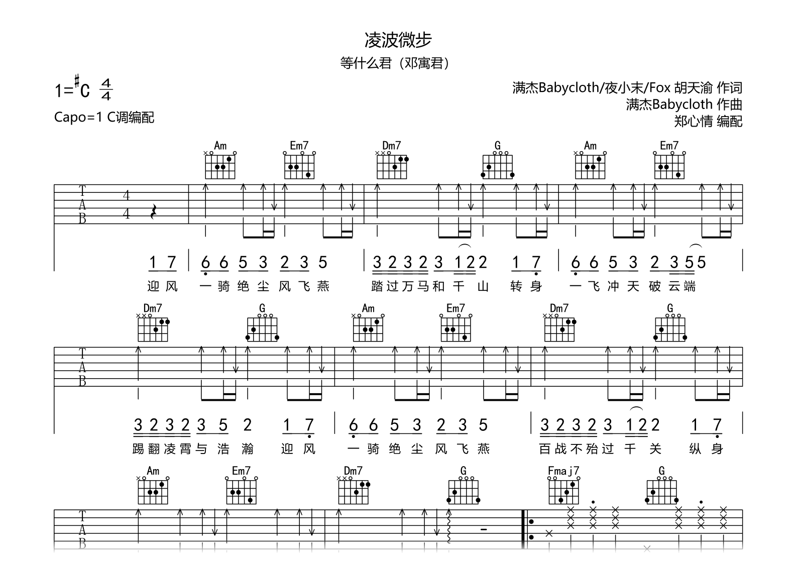 《邓寓君《凌波微步吉他谱》(C调)》内容来自于互联网,不能保证内容的准确性与完整性,仅供学习交流欣赏,请勿用于其它用途,内容版权归原作者及来源网站所有,如有侵犯到您的权益请来信告知,我们将及时删除。