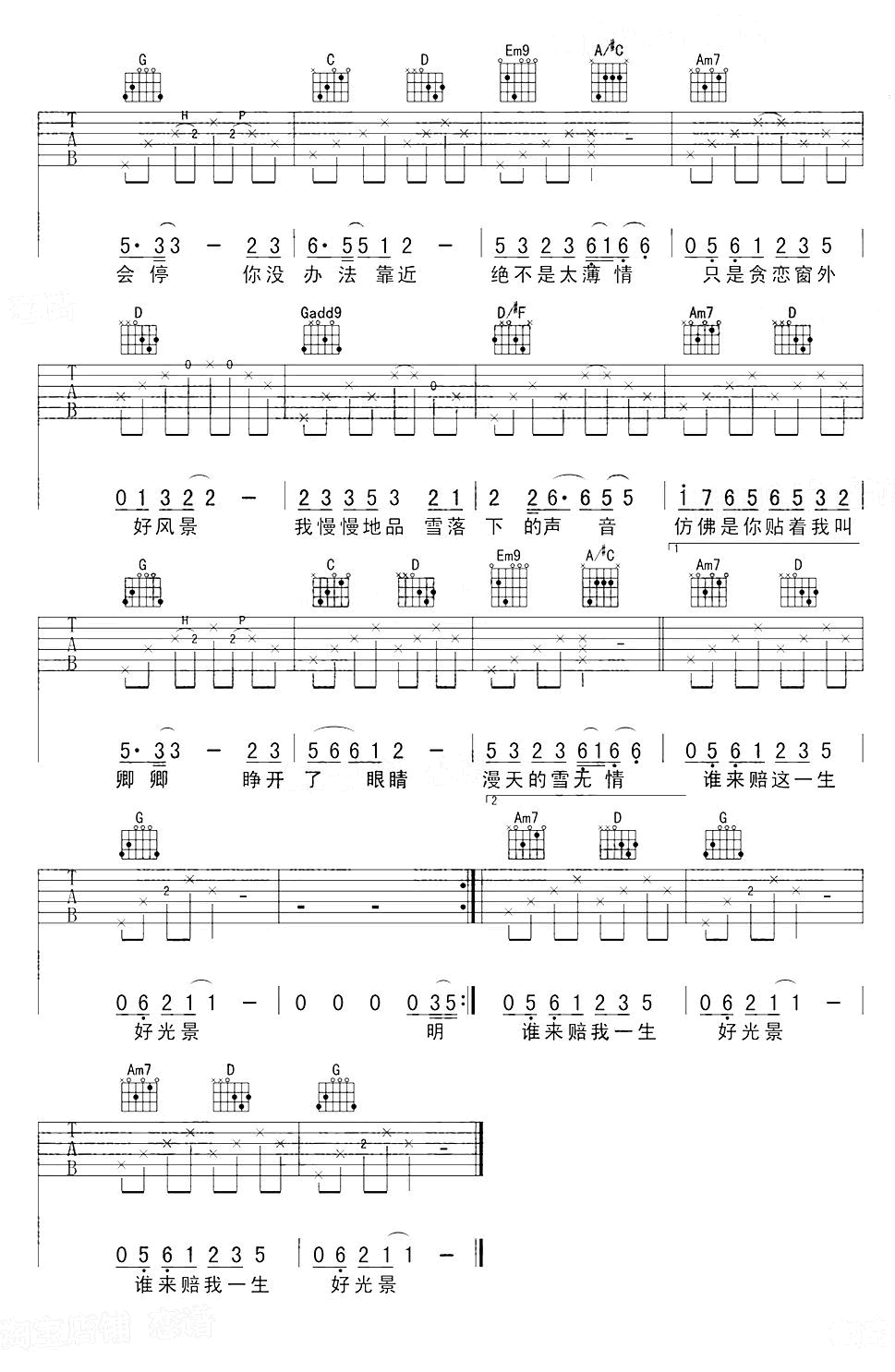 《陆虎《雪落下的声音吉他谱》》内容来自于互联网,不能保证内容的准确性与完整性,仅供学习交流欣赏,请勿用于其它用途,内容版权归原作者及来源网站所有,如有侵犯到您的权益请来信告知,我们将及时删除。