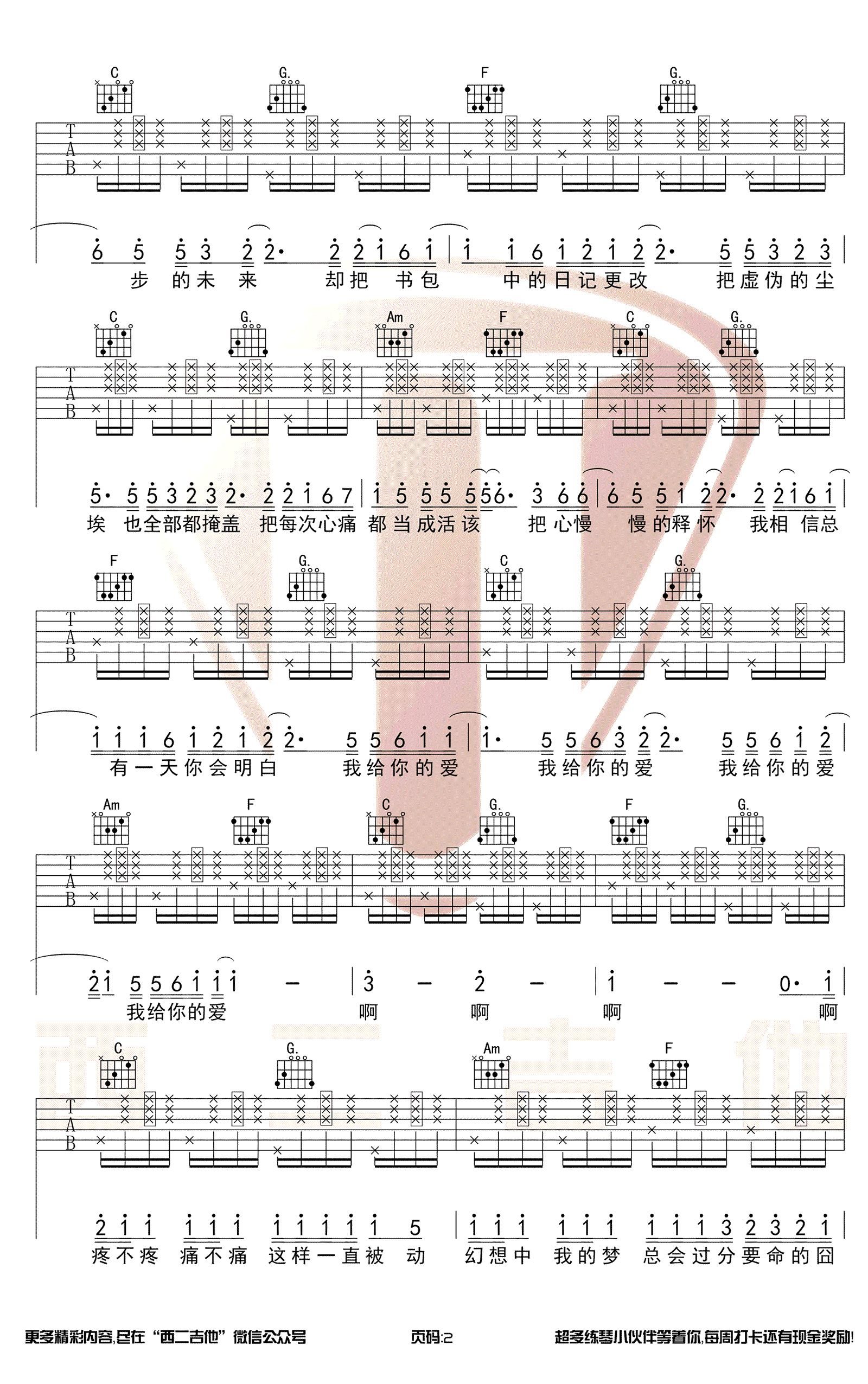 陈硕子的《当我要走的时候》是一首热门民谣歌曲,吉他谱采用E调原调,使用C调指法,夹四品。这首歌曲以扫弦技巧为主,适合初学者学习。乐谱包含主歌和副歌两部分,A段主歌采用分解,而副歌和整个B段则使用扫弦,节奏与前奏相同。左手和弦部分主要是常见的C调和弦。整曲难度较