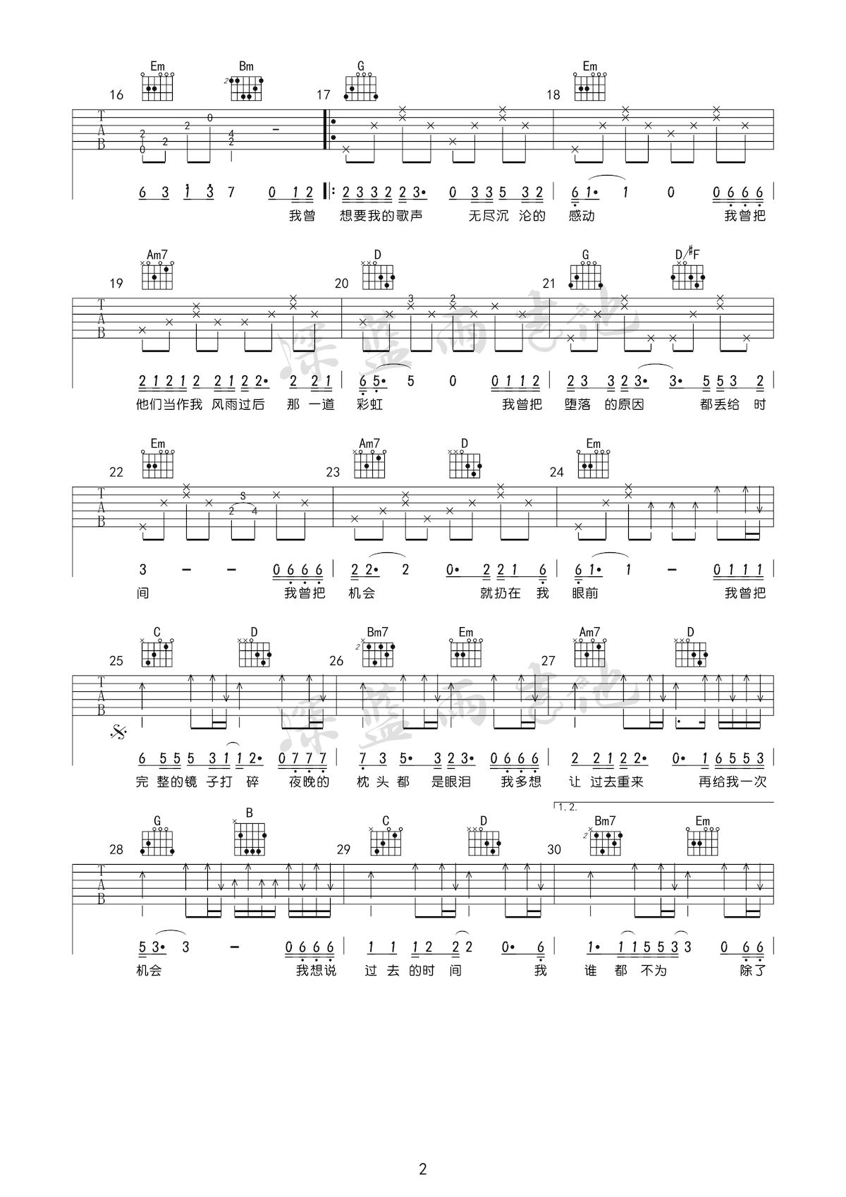 《隔壁老樊《我曾吉他谱》(G调)》内容来自于互联网,不能保证内容的准确性与完整性,仅供学习交流欣赏,请勿用于其它用途,内容版权归原作者及来源网站所有,如有侵犯到您的权益请来信告知,我们将及时删除。