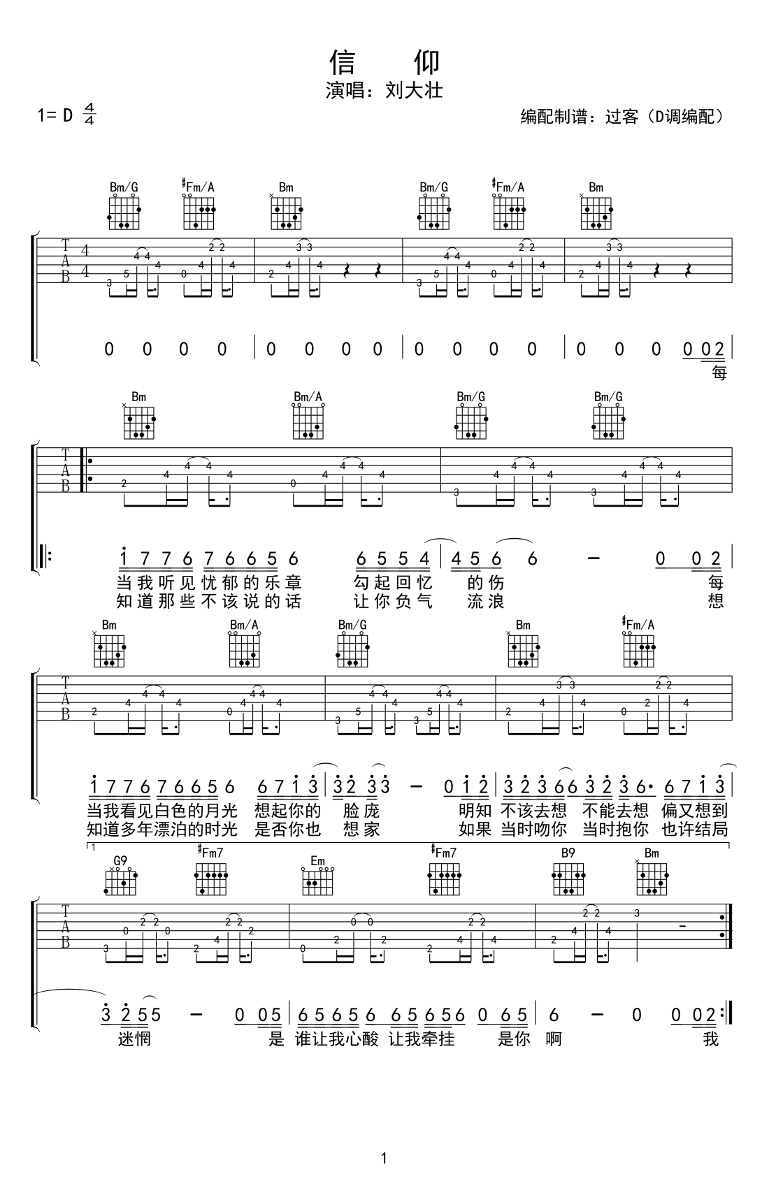 《刘大壮《信仰吉他谱》(D调)》内容来自于互联网,不能保证内容的准确性与完整性,仅供学习交流欣赏,请勿用于其它用途,内容版权归原作者及来源网站所有,如有侵犯到您的权益请来信告知,我们将及时删除。