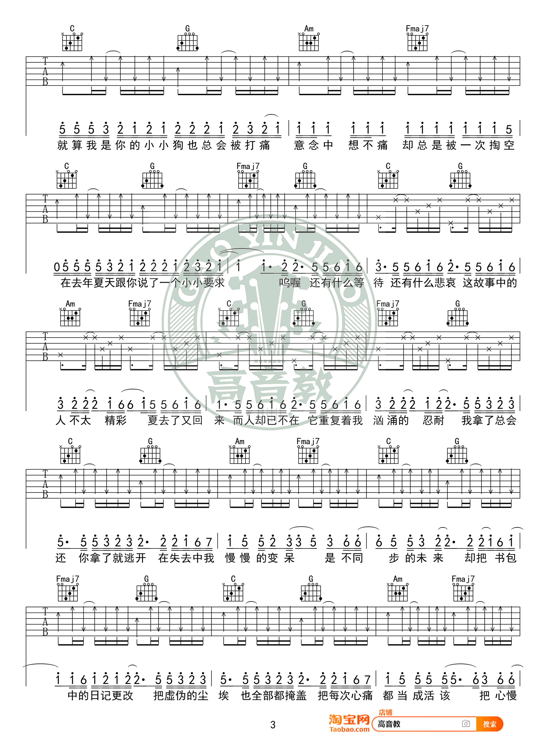 抖音热门翻唱《去年夏天吉他谱》(C调)