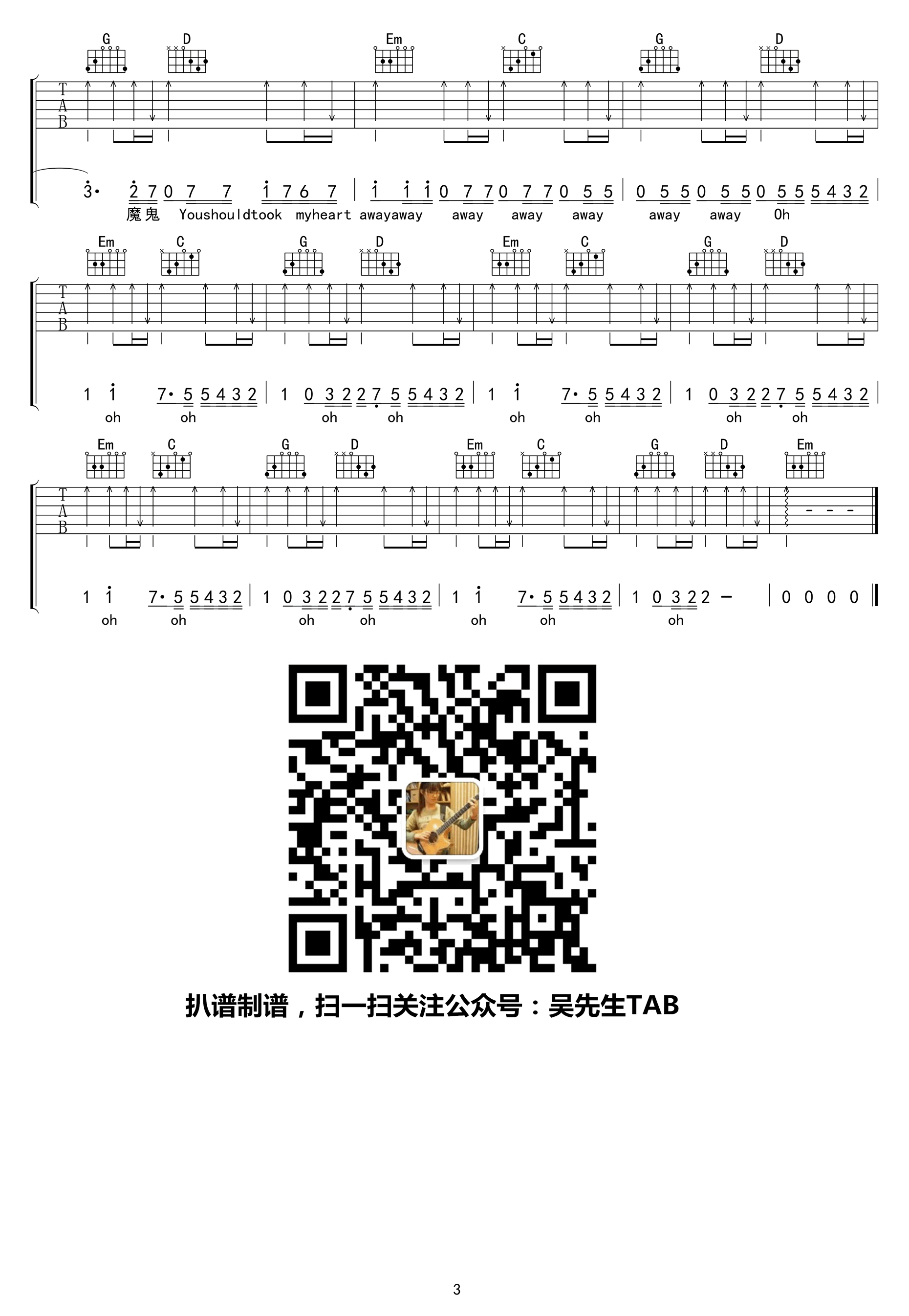 《邓紫棋《来自天堂的魔鬼吉他谱》(G调)》内容来自于互联网,不能保证内容的准确性与完整性,仅供学习交流欣赏,请勿用于其它用途,内容版权归原作者及来源网站所有,如有侵犯到您的权益请来信告知,我们将及时删除。
