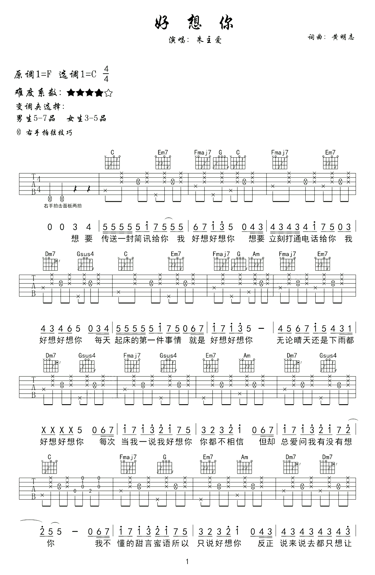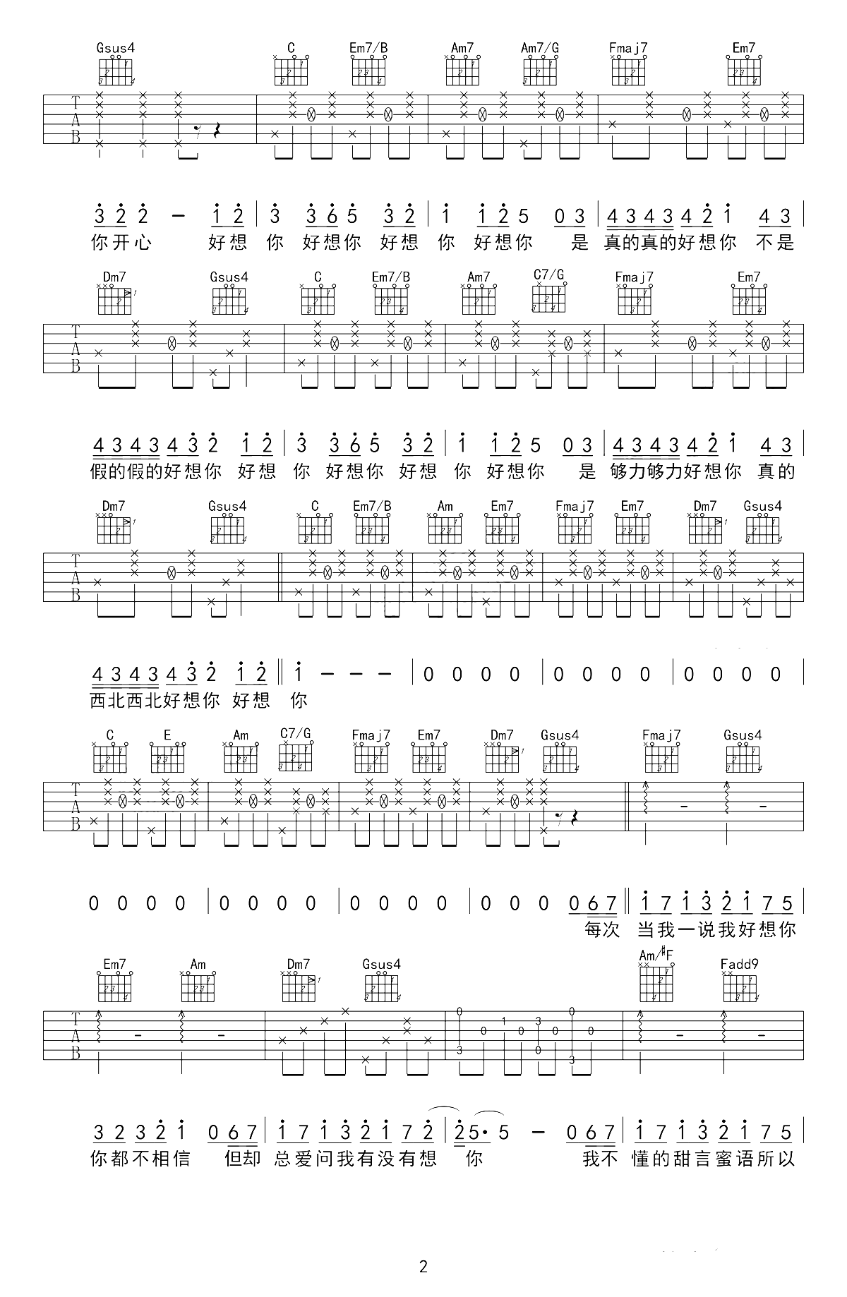 《《好想你吉他谱》》内容来自于互联网,不能保证内容的准确性与完整性,仅供学习交流欣赏,请勿用于其它用途,内容版权归原作者及来源网站所有,如有侵犯到您的权益请来信告知,我们将及时删除。