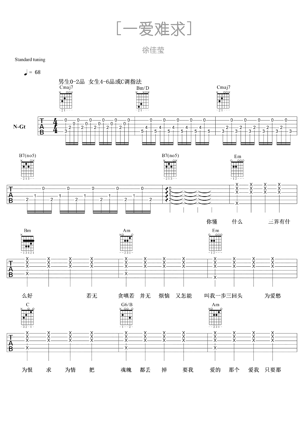 《徐佳莹《一爱难求吉他谱》》内容来自于互联网,不能保证内容的准确性与完整性,仅供学习交流欣赏,请勿用于其它用途,内容版权归原作者及来源网站所有,如有侵犯到您的权益请来信告知,我们将及时删除。