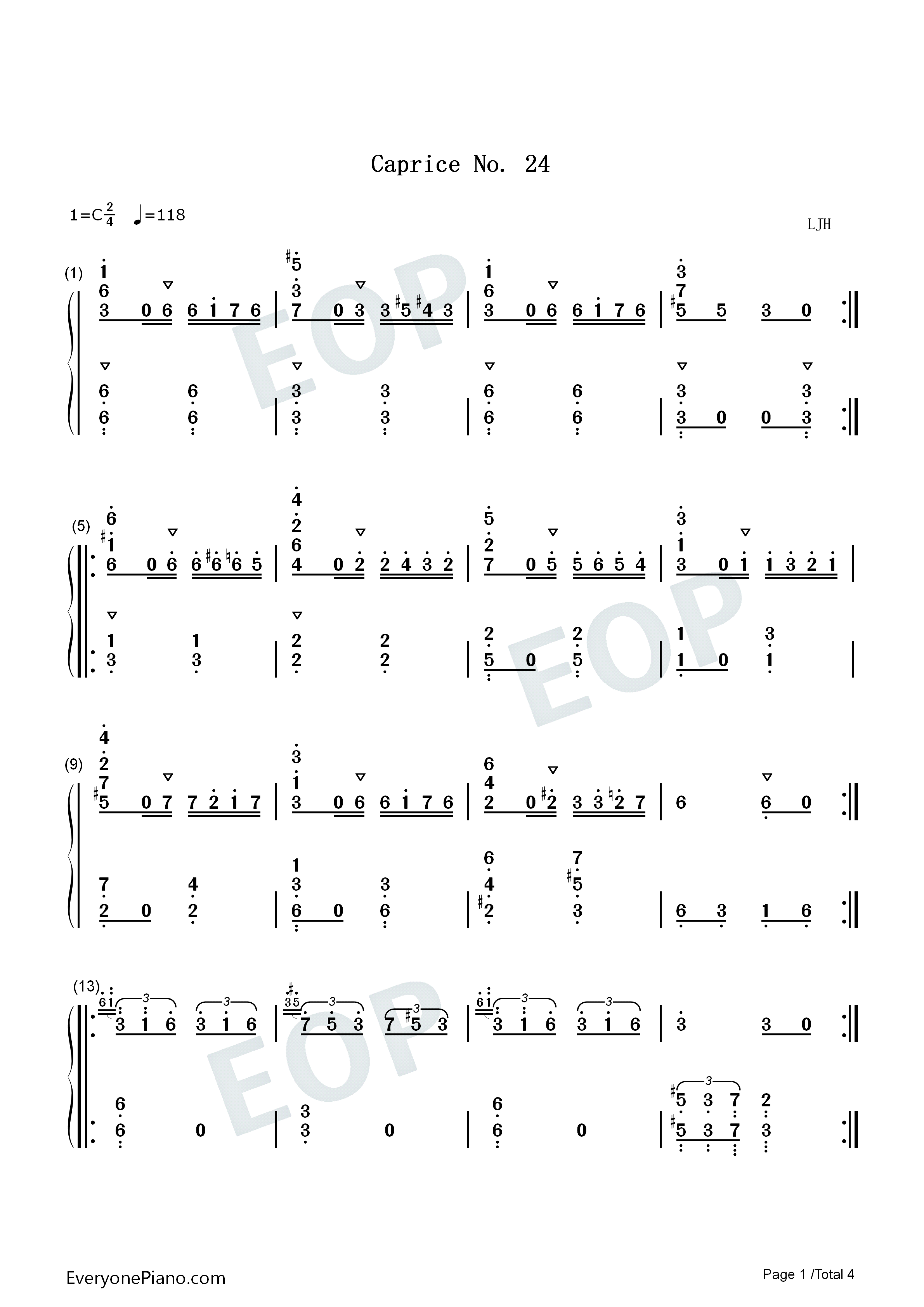 《尼科罗·帕格尼尼 Niccolò Paganini《帕格尼尼第24号随想曲简谱》》内容来自于互联网,不能保证内容的准确性与完整性,仅供学习交流欣赏,请勿用于其它用途,内容版权归原作者及来源网站所有,如有侵犯到您的权益请来信告知,我们将及时删除。