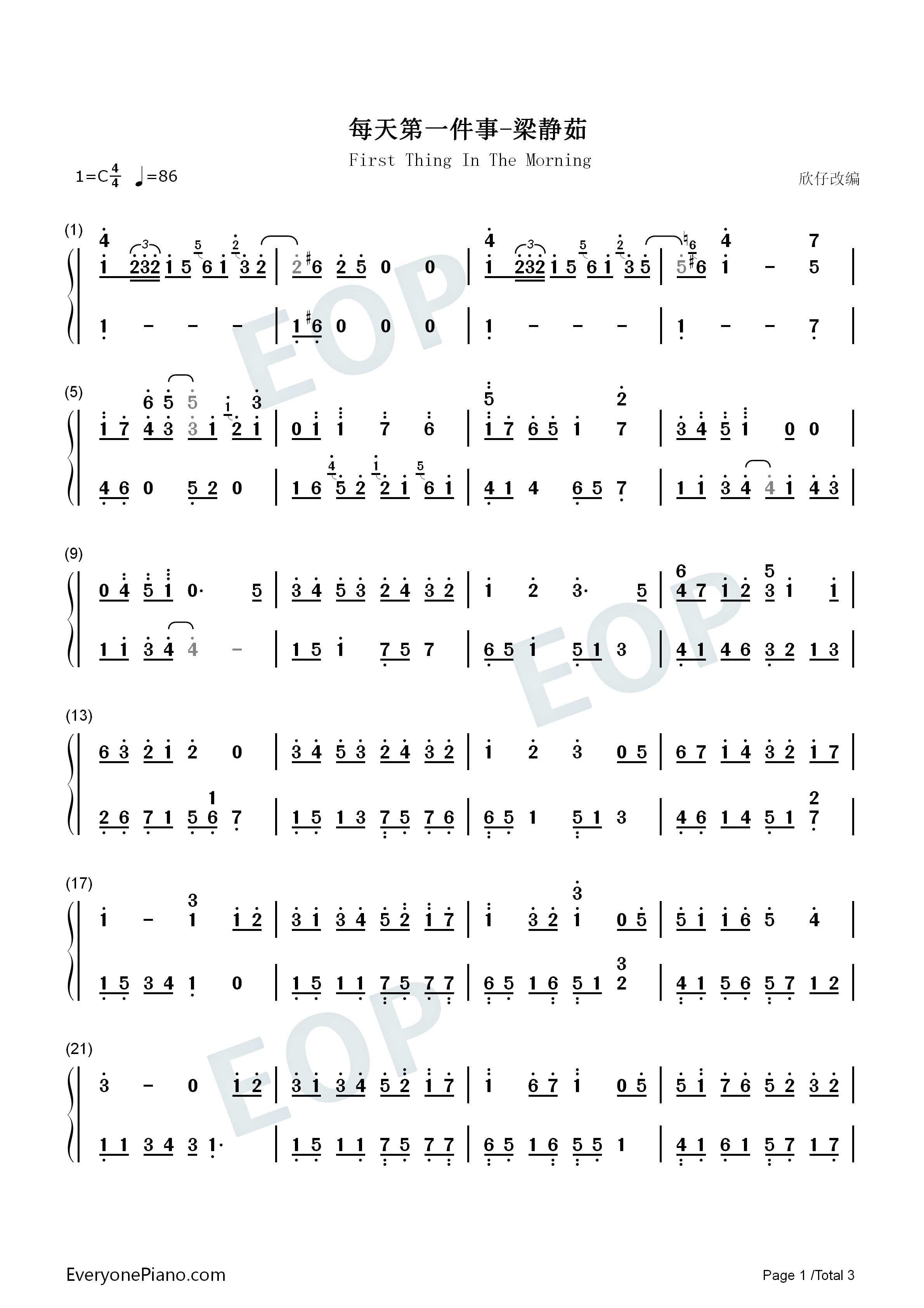 《梁静茹《每天第一件事简谱》》内容来自于互联网,不能保证内容的准确性与完整性,仅供学习交流欣赏,请勿用于其它用途,内容版权归原作者及来源网站所有,如有侵犯到您的权益请来信告知,我们将及时删除。