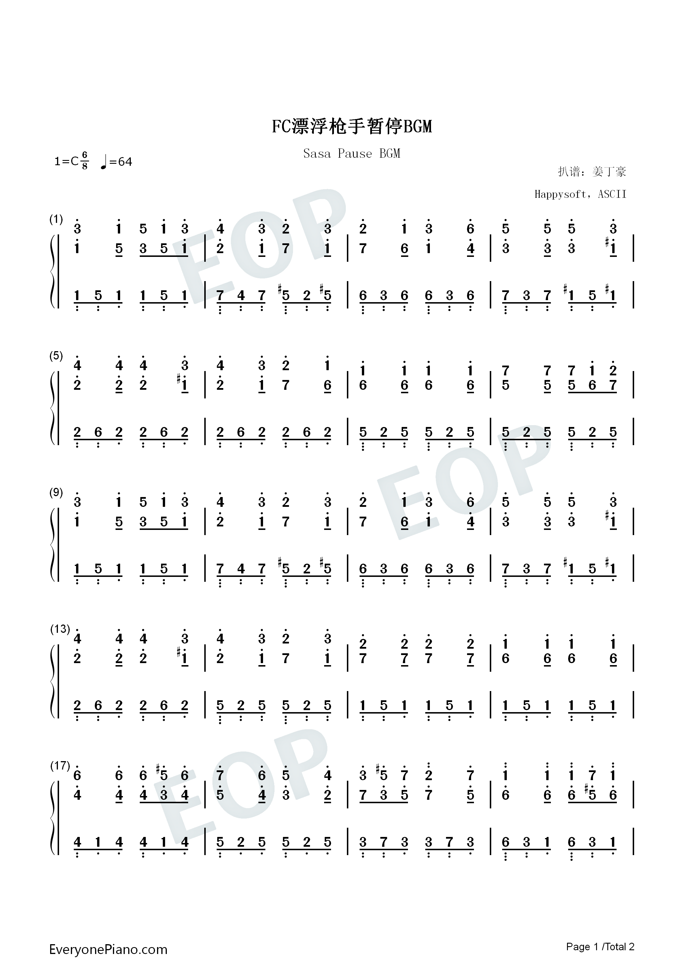 ASCII《FC漂浮枪手暂停BGM简谱》