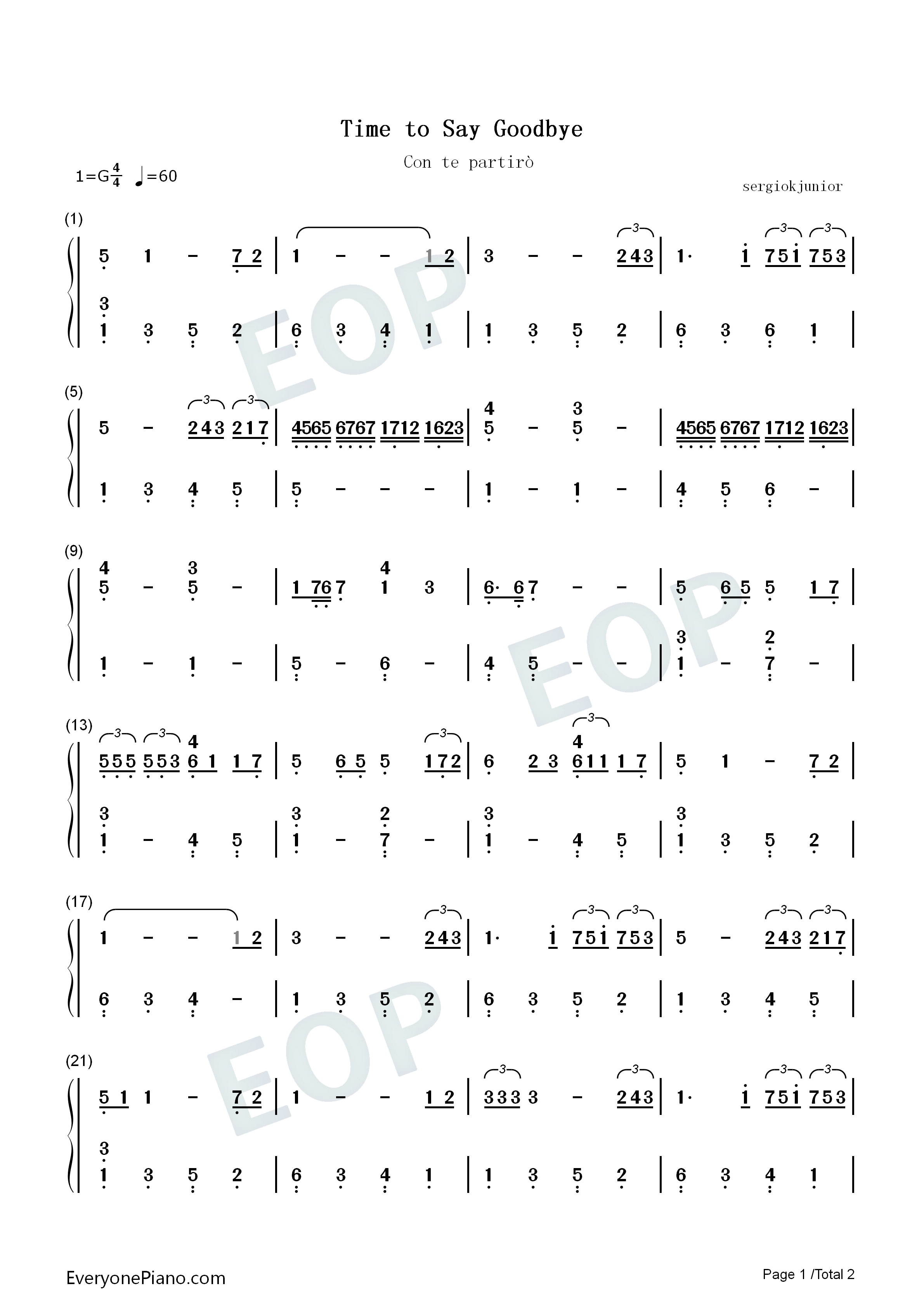 《Andrea Bocelli Sarah Brightman《Time to Say Goodbye简谱》》内容来自于互联网,不能保证内容的准确性与完整性,仅供学习交流欣赏,请勿用于其它用途,内容版权归原作者及来源网站所有,如有侵犯到您的权益请来信告知,我们将及时删除。