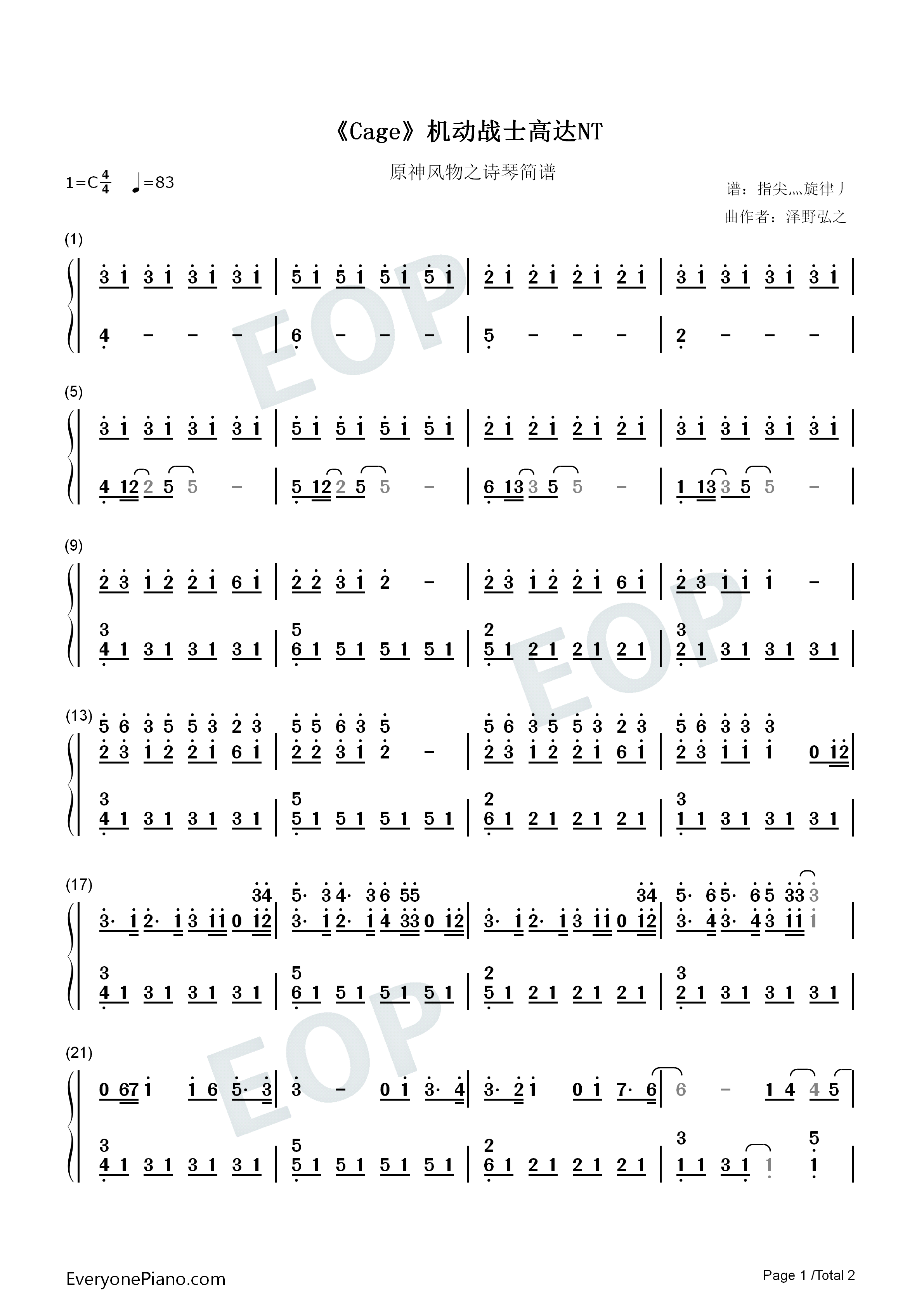 《泽野弘之 SawanoHiroyuki[nZk]:Tielle《Cage简谱》》内容来自于互联网,不能保证内容的准确性与完整性,仅供学习交流欣赏,请勿用于其它用途,内容版权归原作者及来源网站所有,如有侵犯到您的权益请来信告知,我们将及时删除。