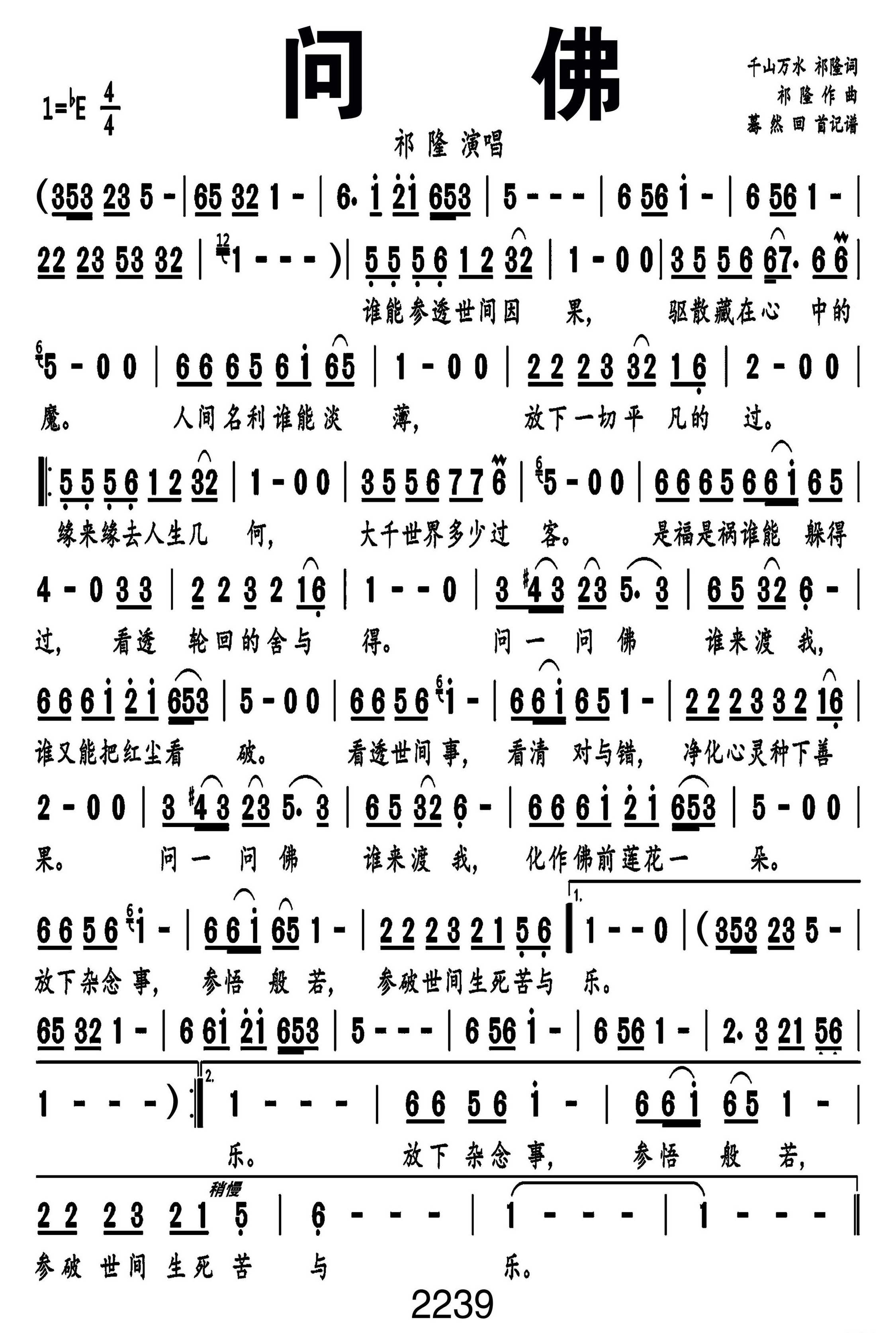 《祁隆《问佛简谱》》内容来自于互联网,不能保证内容的准确性与完整性,仅供学习交流欣赏,请勿用于其它用途,内容版权归原作者及来源网站所有,如有侵犯到您的权益请来信告知,我们将及时删除。