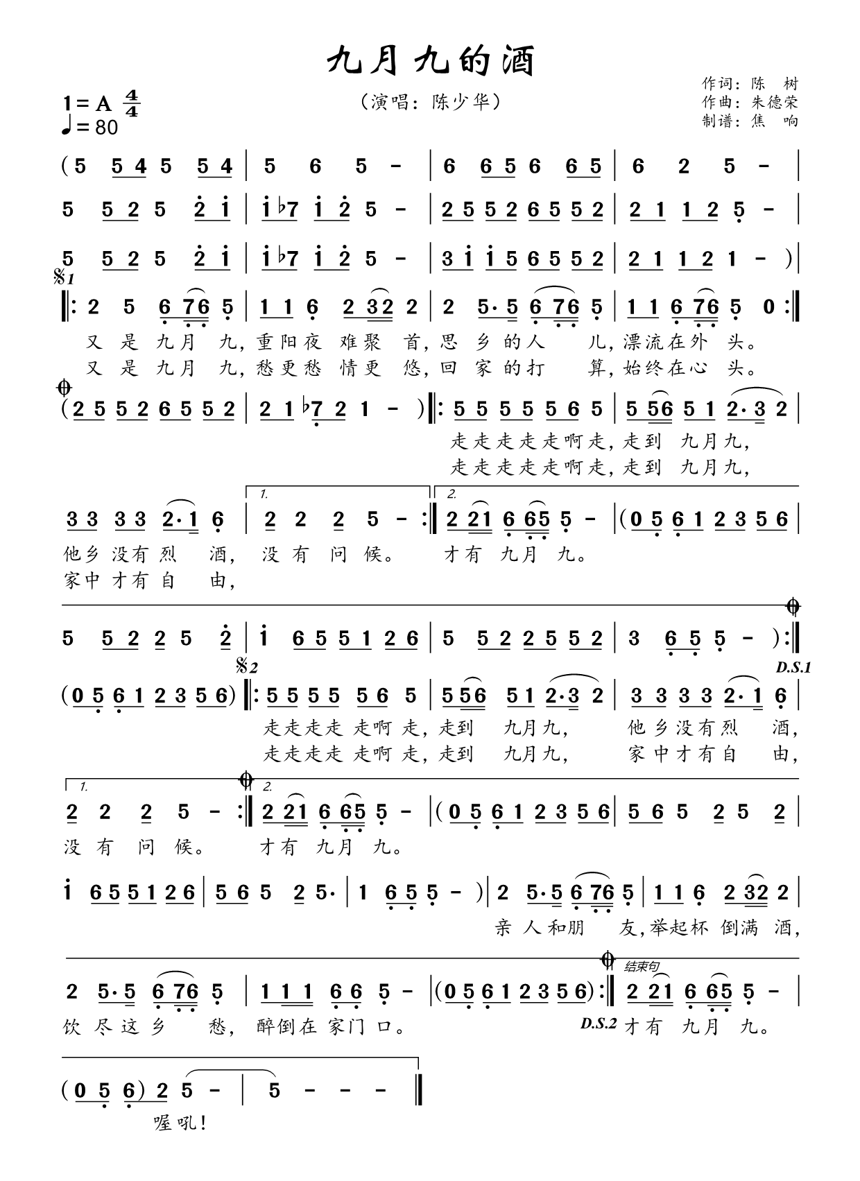 本文标题 《陈少华《九月九的酒简谱》》,网址:https://www.21qupu.com/jianpu/11084.html