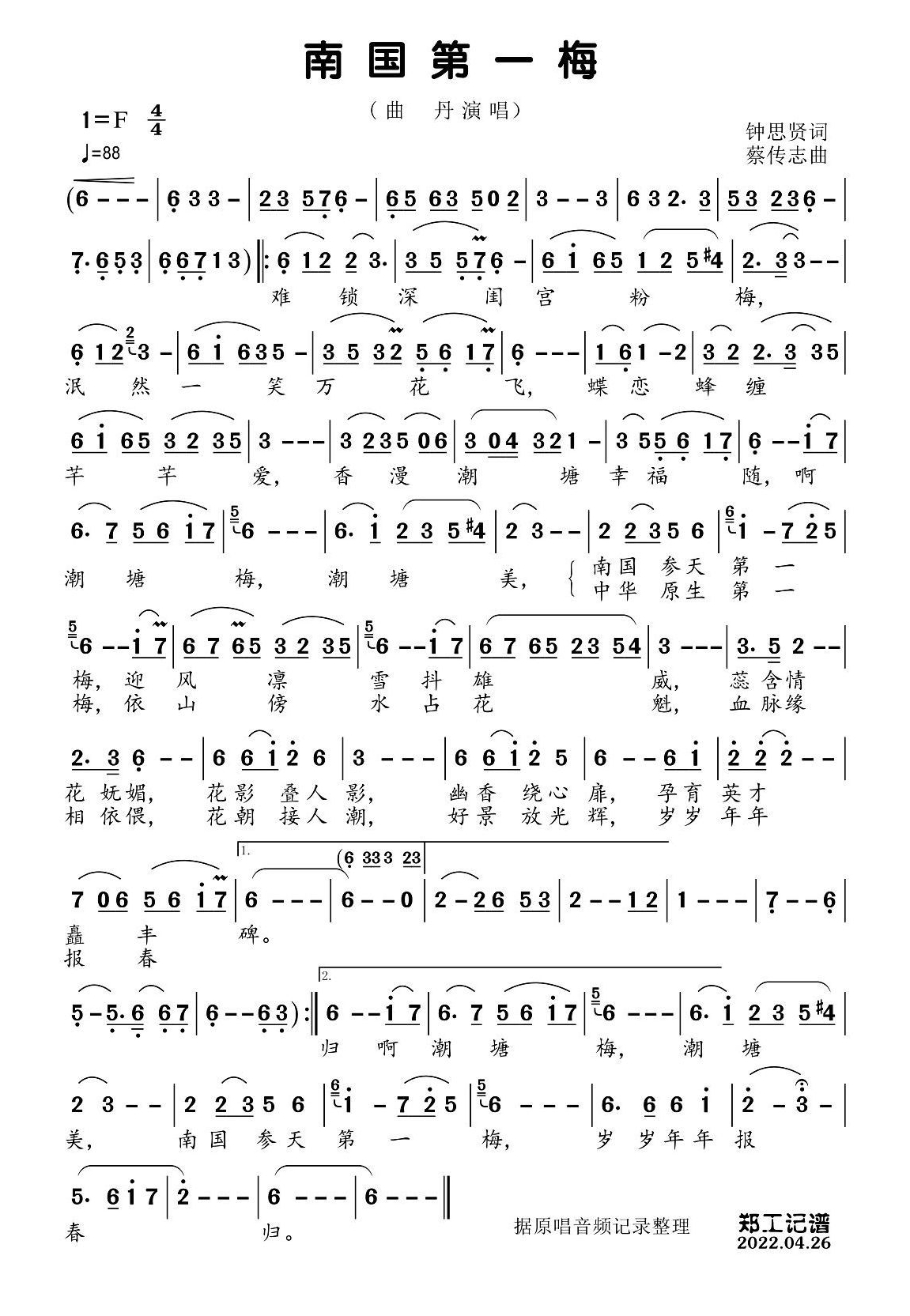 《曲丹《南国第一梅简谱》》内容来自于互联网,不能保证内容的准确性与完整性,仅供学习交流欣赏,请勿用于其它用途,内容版权归原作者及来源网站所有,如有侵犯到您的权益请来信告知,我们将及时删除。