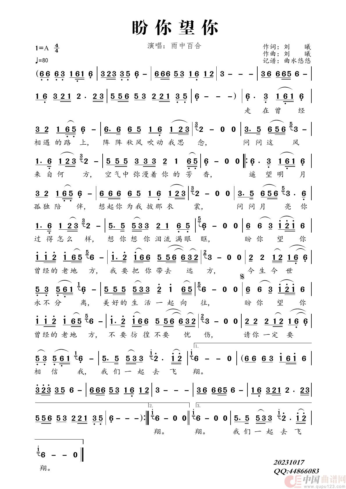 《雨中百合《盼你望你简谱》》内容来自于互联网,不能保证内容的准确性与完整性,仅供学习交流欣赏,请勿用于其它用途,内容版权归原作者及来源网站所有,如有侵犯到您的权益请来信告知,我们将及时删除。
