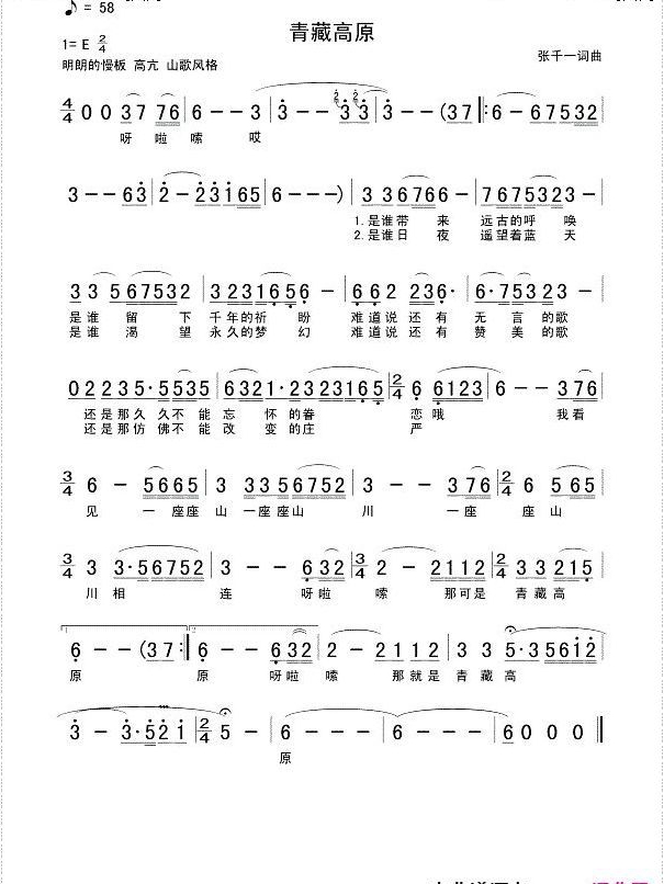 《李娜《青藏高原简谱》》内容来自于互联网,不能保证内容的准确性与完整性,仅供学习交流欣赏,请勿用于其它用途,内容版权归原作者及来源网站所有,如有侵犯到您的权益请来信告知,我们将及时删除。