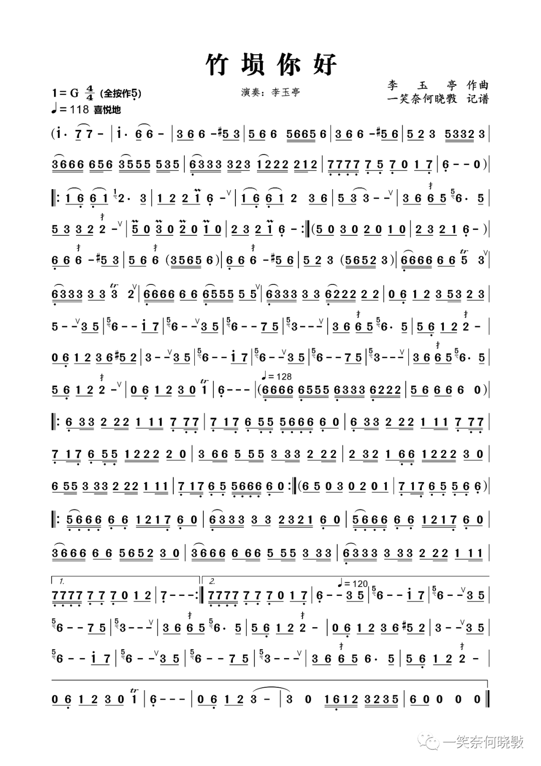 《李玉亭《竹埙你好简谱》》内容来自于互联网,不能保证内容的准确性与完整性,仅供学习交流欣赏,请勿用于其它用途,内容版权归原作者及来源网站所有,如有侵犯到您的权益请来信告知,我们将及时删除。
