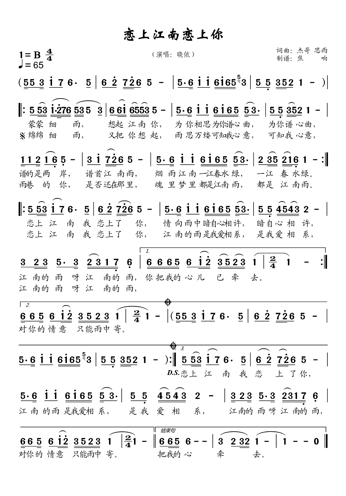 《晓依《恋上江南恋上你简谱》》内容来自于互联网,不能保证内容的准确性与完整性,仅供学习交流欣赏,请勿用于其它用途,内容版权归原作者及来源网站所有,如有侵犯到您的权益请来信告知,我们将及时删除。