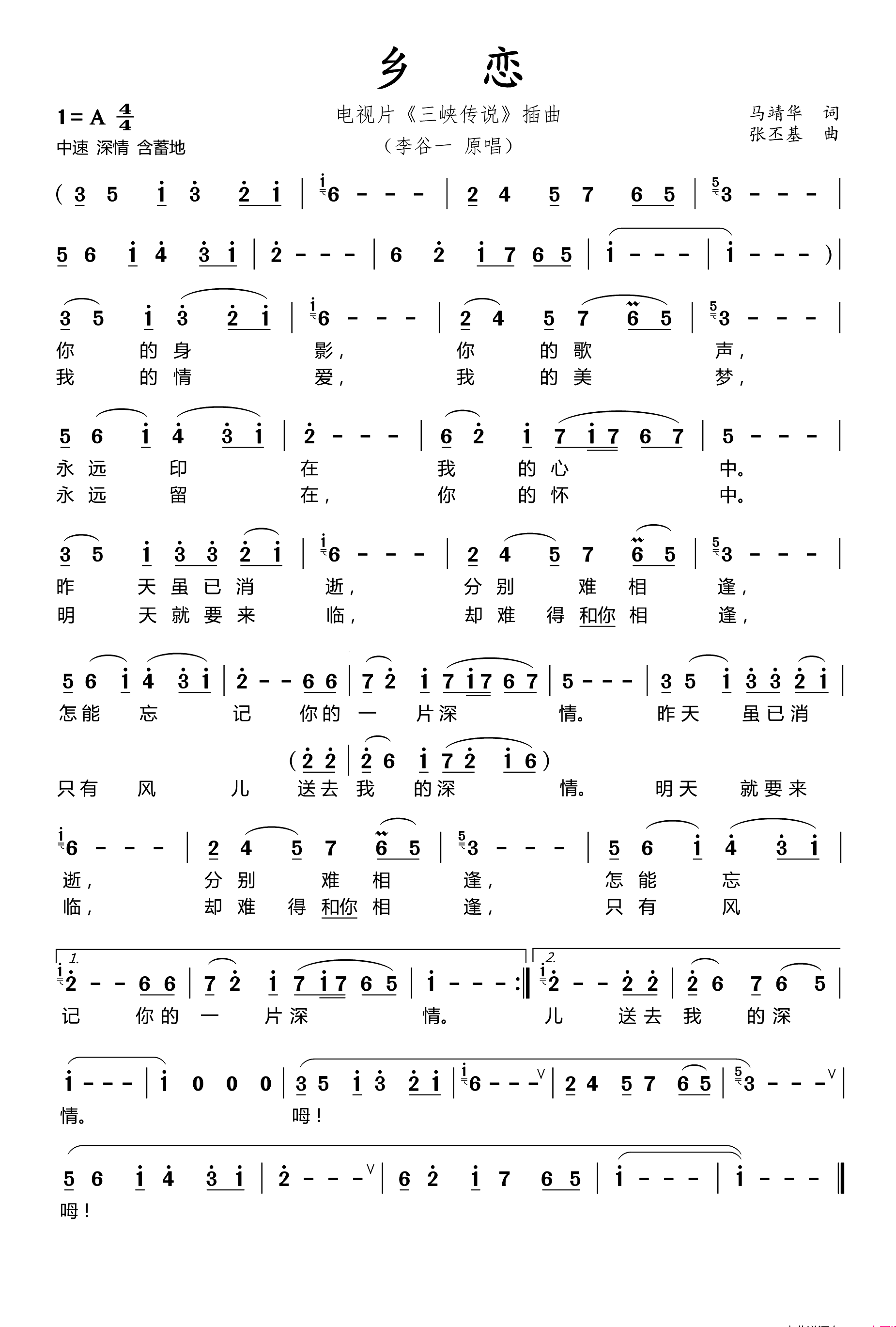 《李谷一《乡恋简谱》》内容来自于互联网,不能保证内容的准确性与完整性,仅供学习交流欣赏,请勿用于其它用途,内容版权归原作者及来源网站所有,如有侵犯到您的权益请来信告知,我们将及时删除。