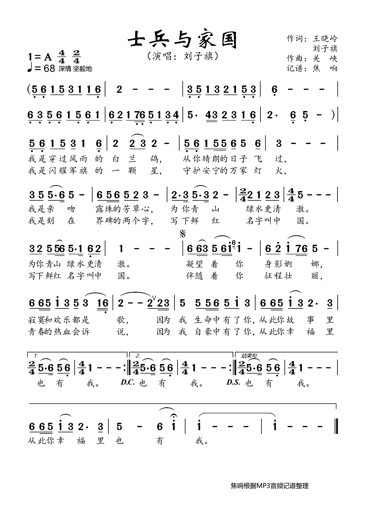 本文标题 《刘子旗《士兵与家国简谱》》,网址:https://www.21qupu.com/jianpu/15674.html