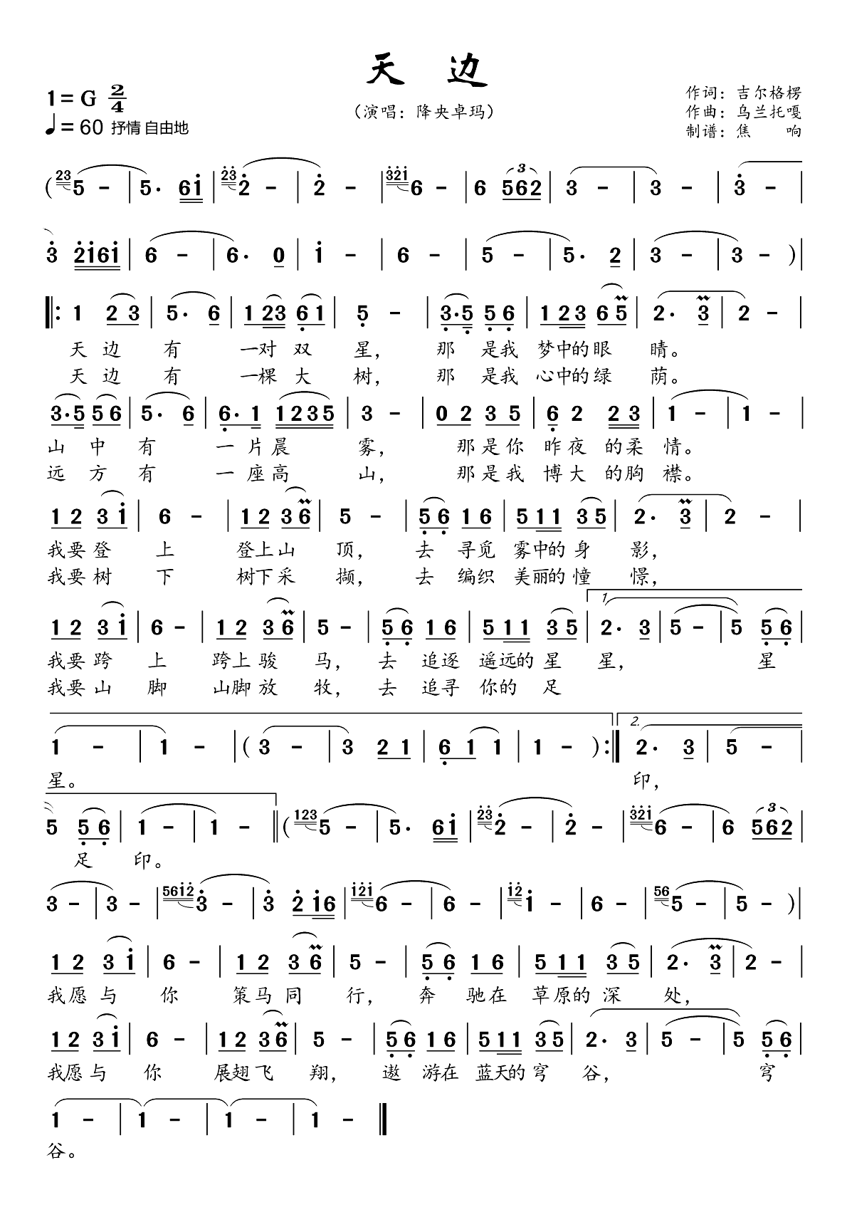 本文标题 《降央卓玛《天边简谱》》,网址:https://www.21qupu.com/jianpu/15744.html