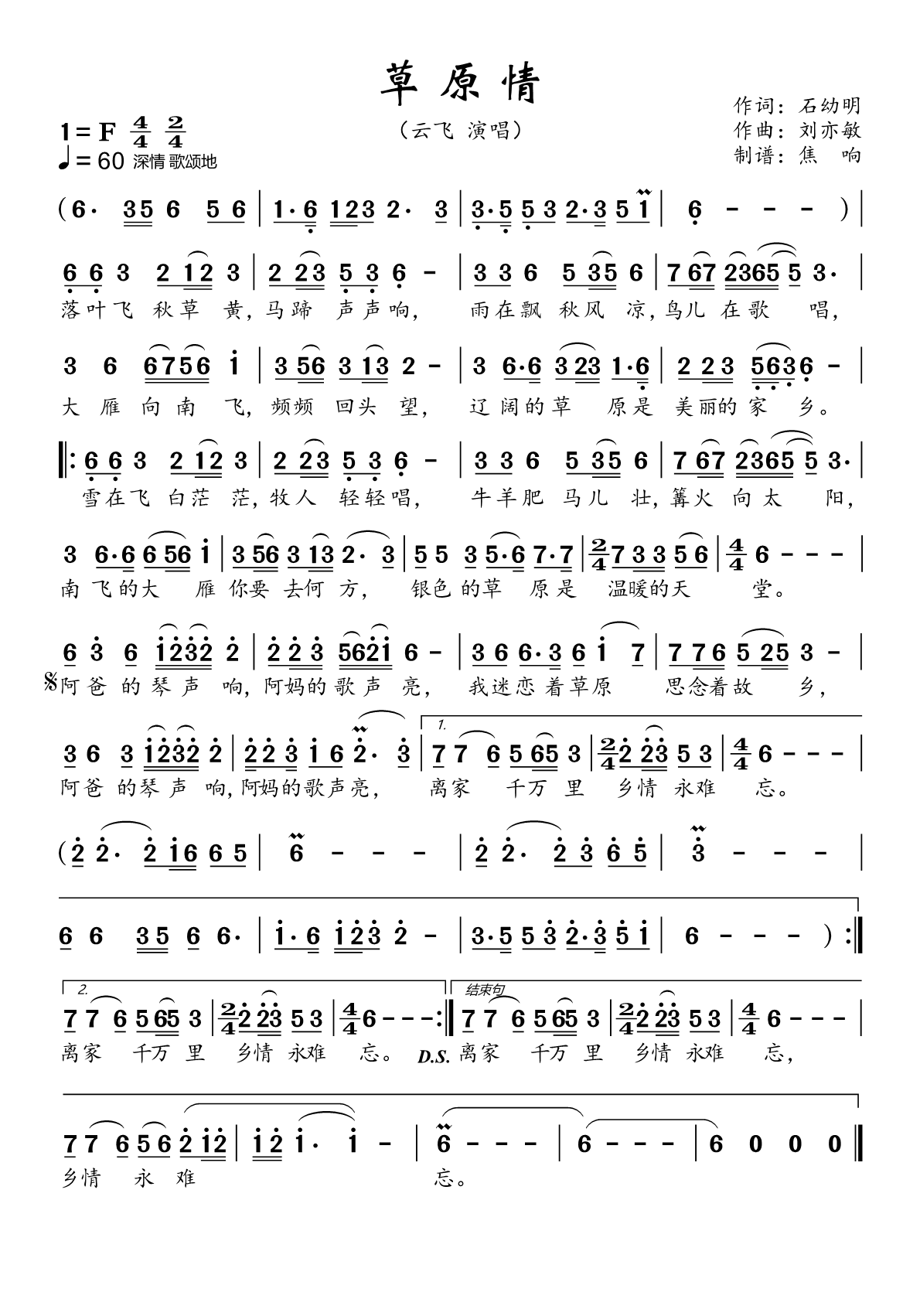 云飞《草原情简谱》